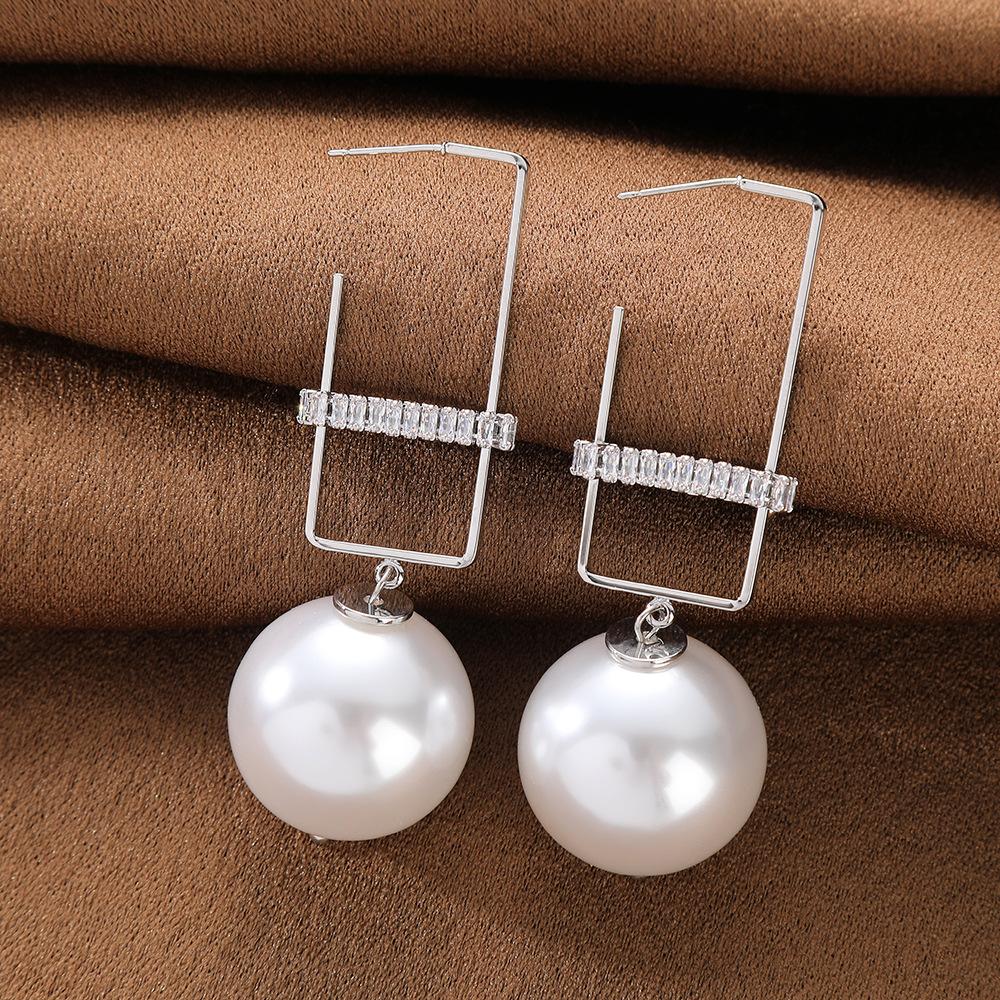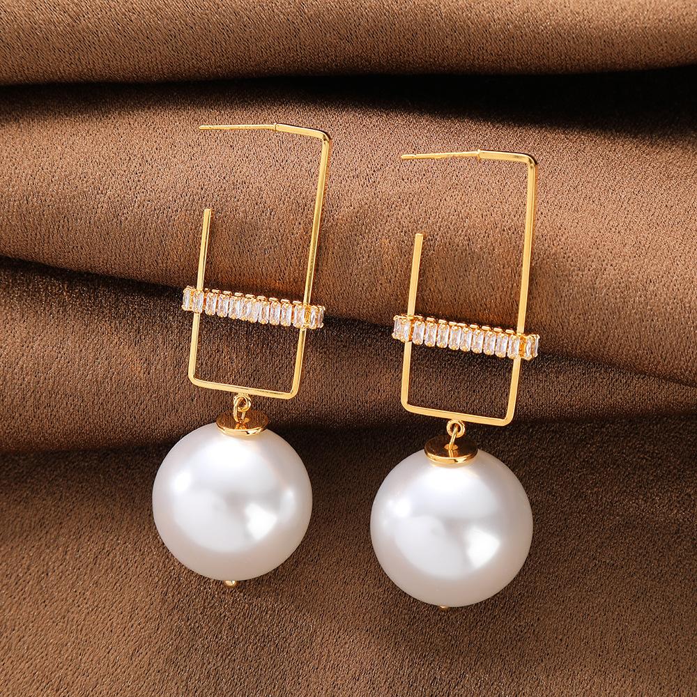 Brincos Quadrados Geométricos Barroco Pérola Vento Frio Zircão Elegante Brincos Moda Brincos Fornecimento de Tenda