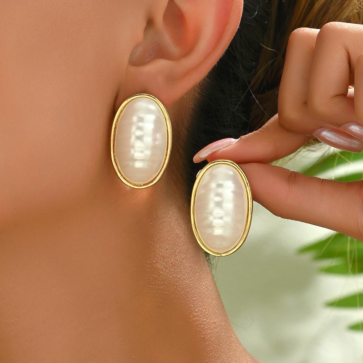 Brincos femininos europeus e americanos transfronteiriços nicho high-end sentido grande pérola design brincos Coringa brincos de moda atacado