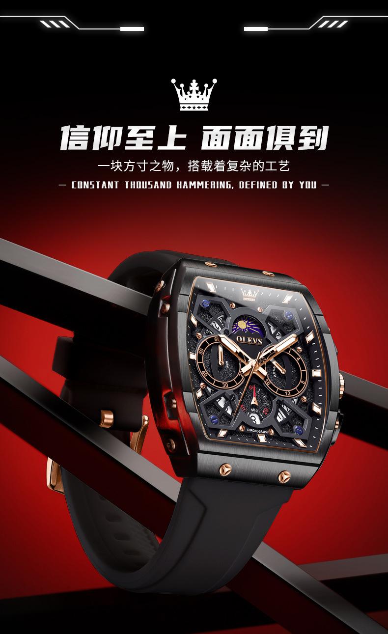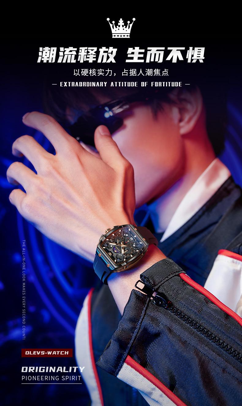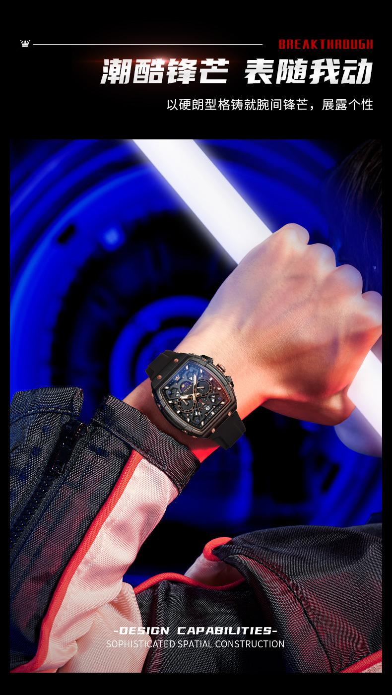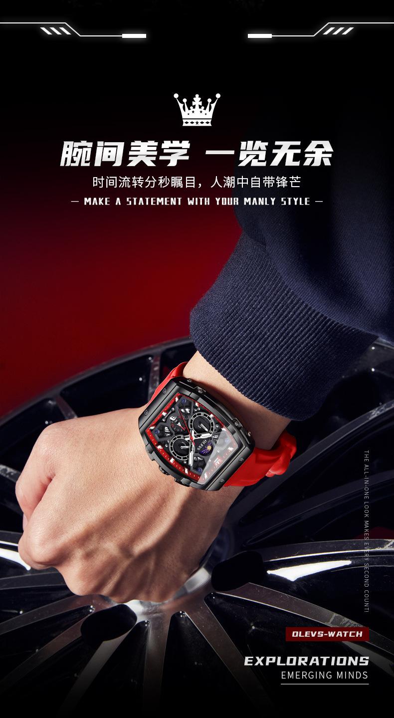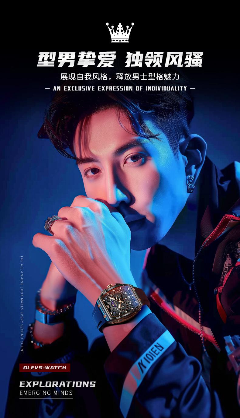 Relógio da marca Oli Shi com mostrador grande em forma de barril retangular relógio de quartzo Student Richard Relógio masculino Relógio masculino