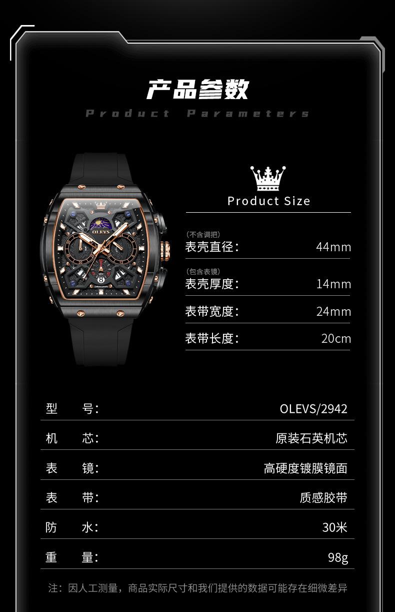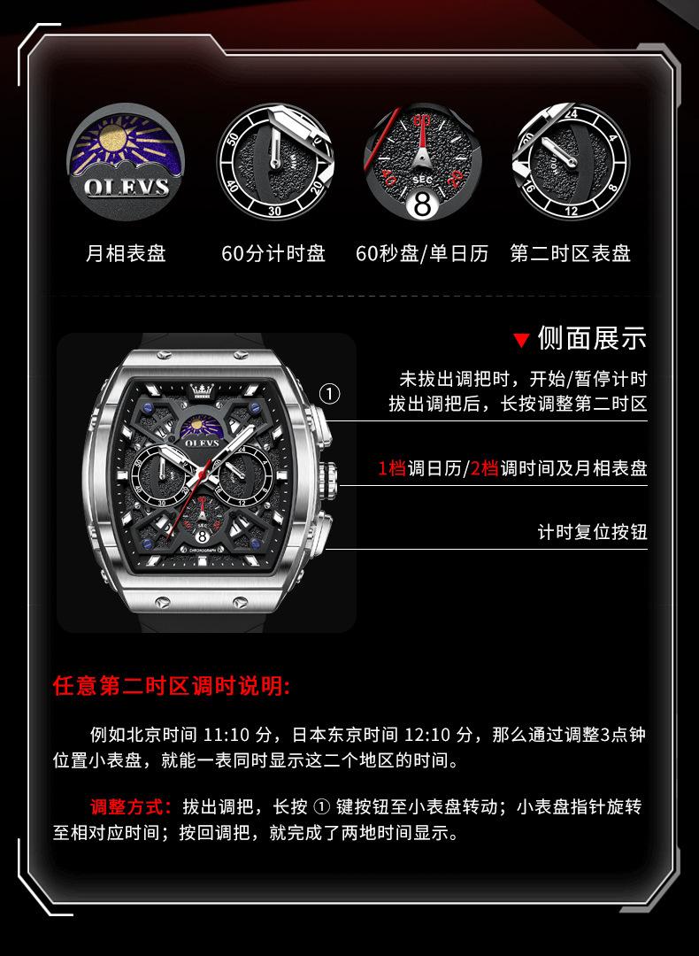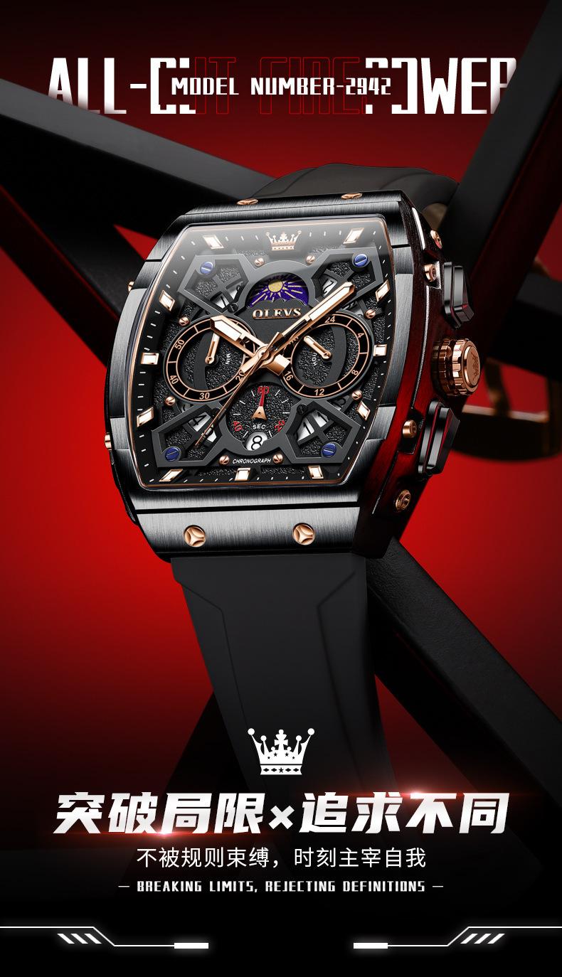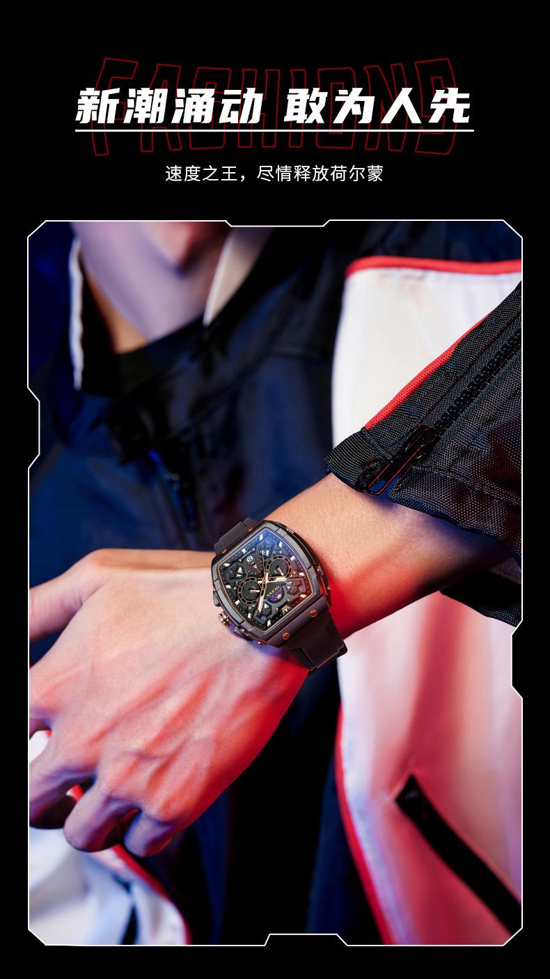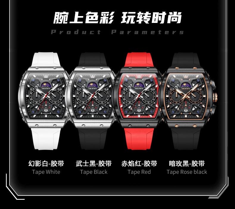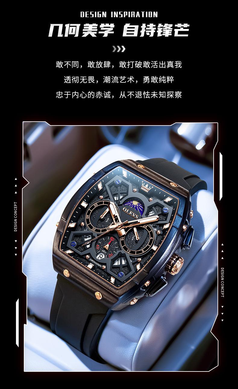 Relógio da marca Oli Shi com mostrador grande em forma de barril retangular relógio de quartzo Student Richard Relógio masculino Relógio masculino