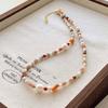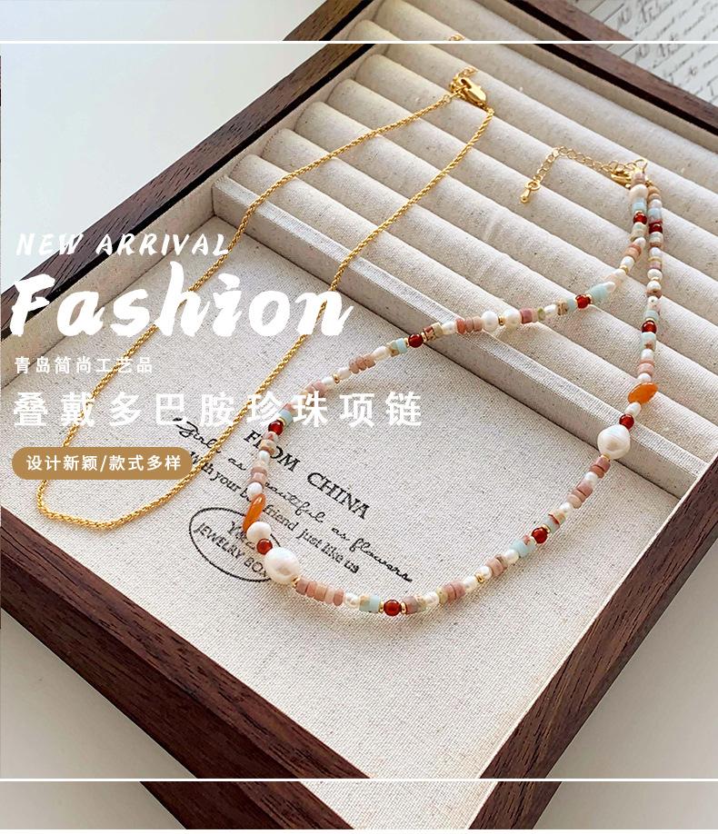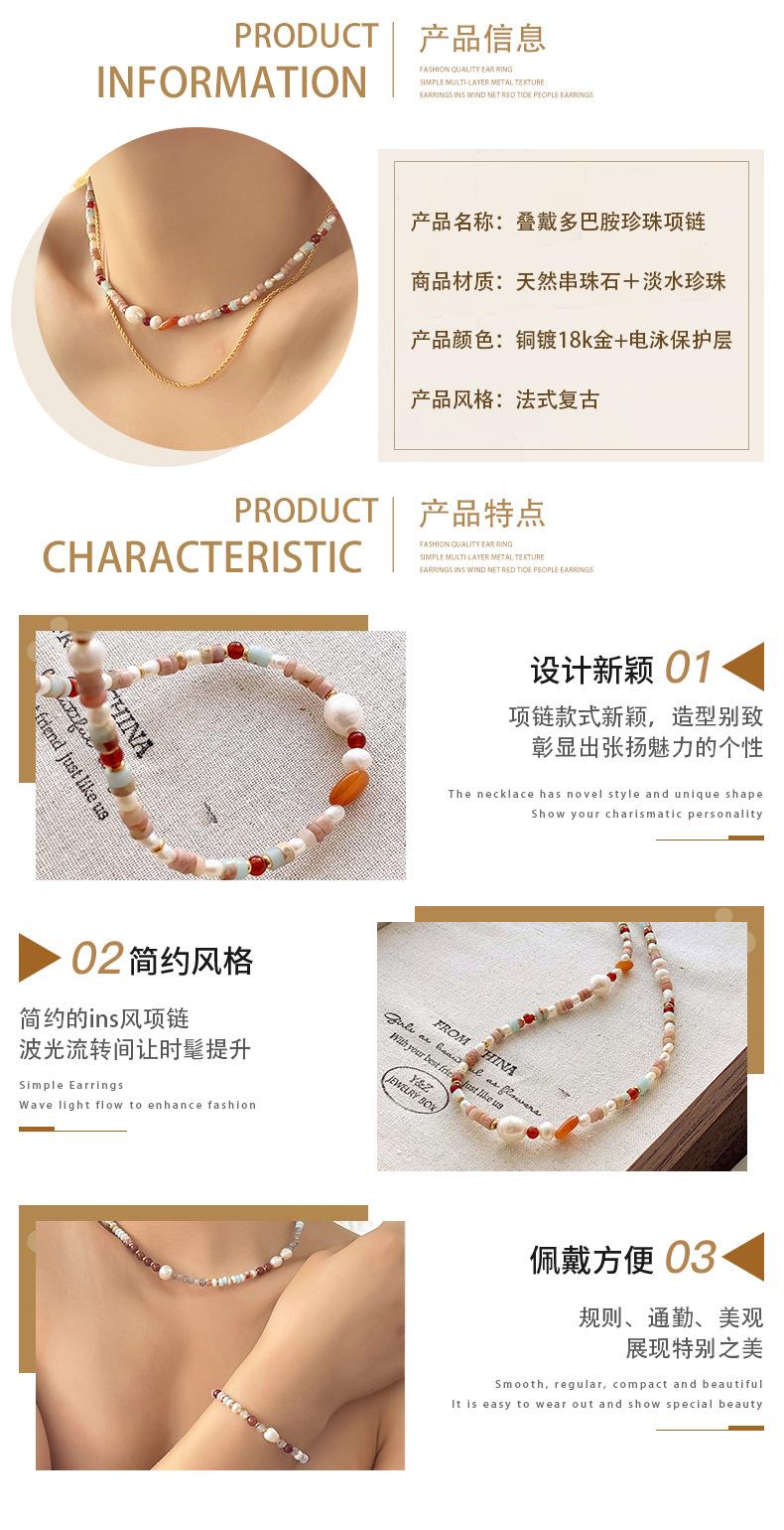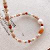 Colar de pedra frisada de ágata vermelha pérola natural de estilo francês leve luxo high-end nicho design clavícula cadeia