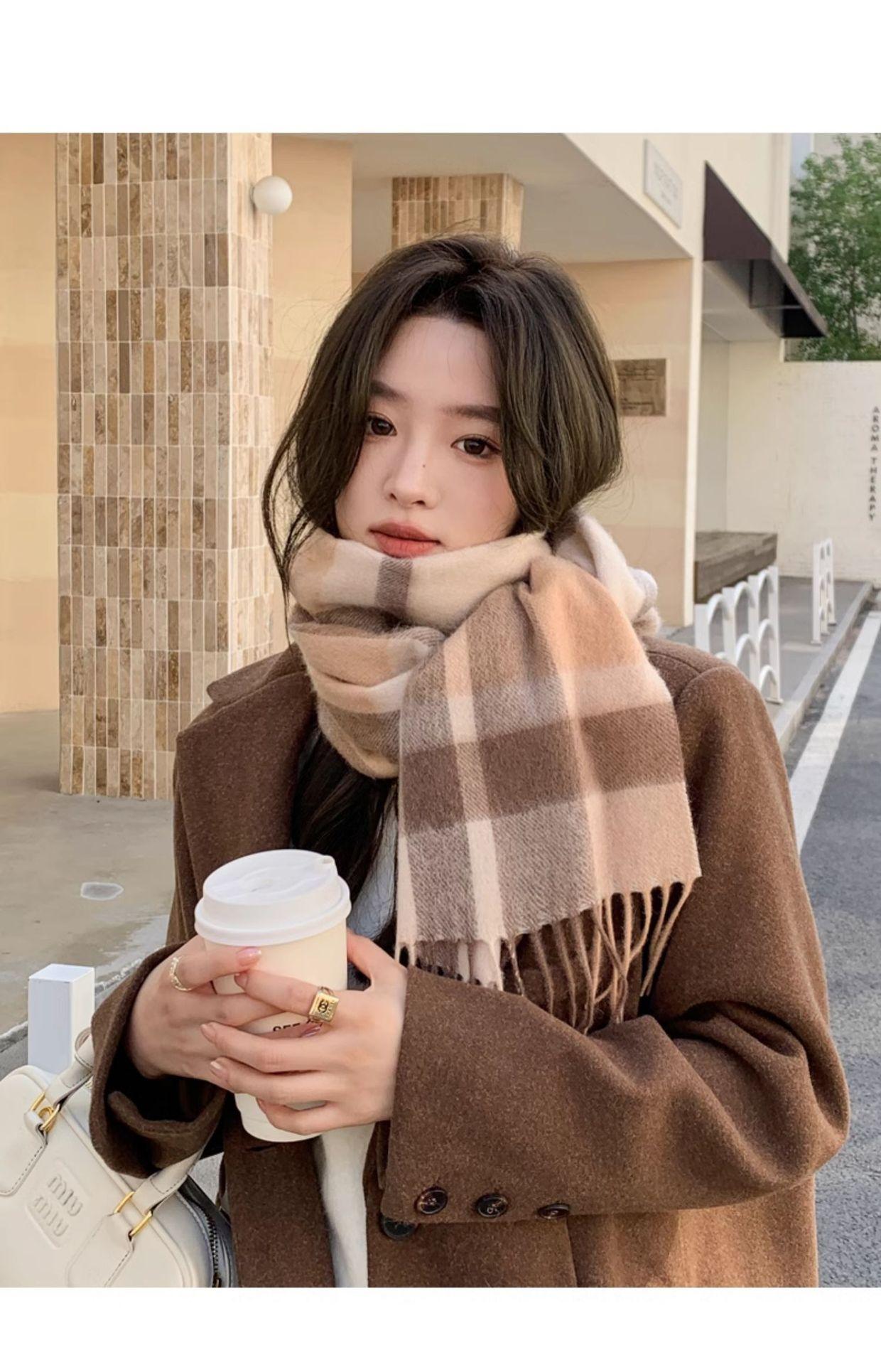 Compre Cachecol Xadrez de Lã Pura Australiano 100 Clássico Britânico Unissex para Casais Inverno Marrom Quente no atacado no Joom.pro