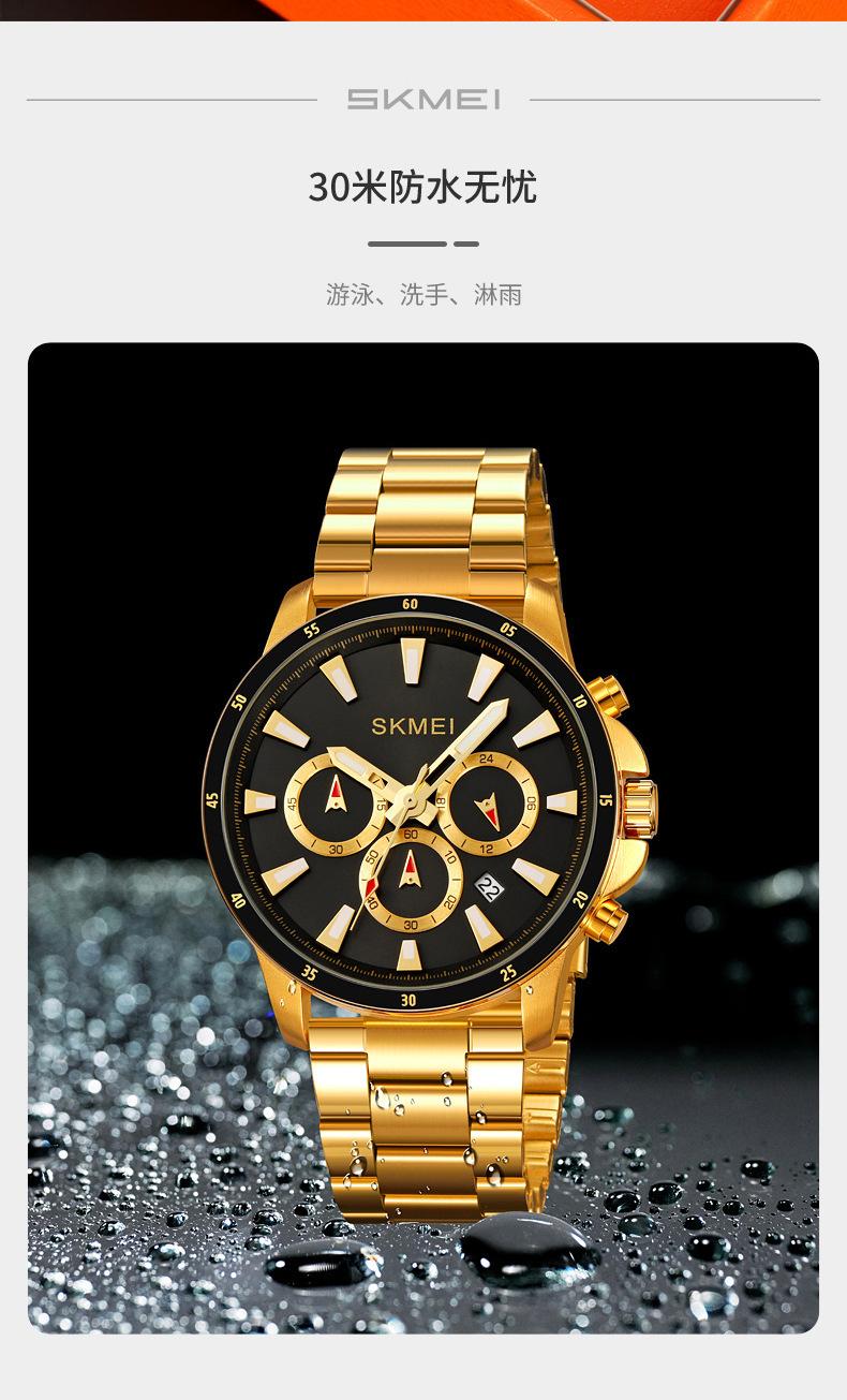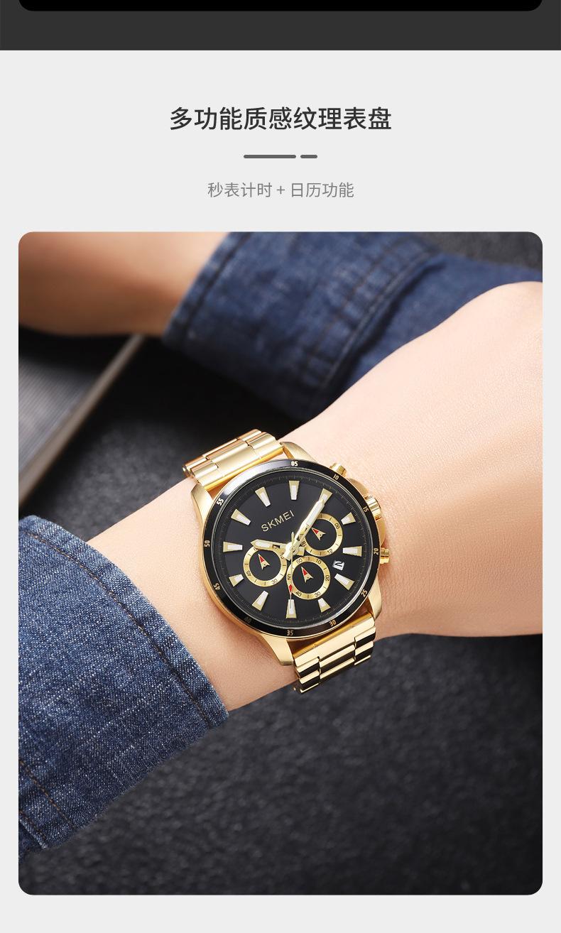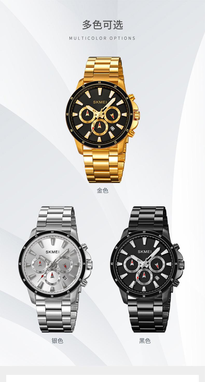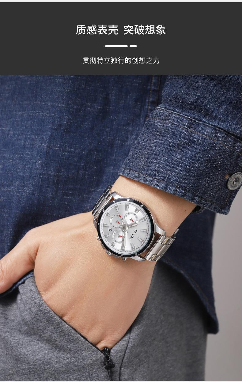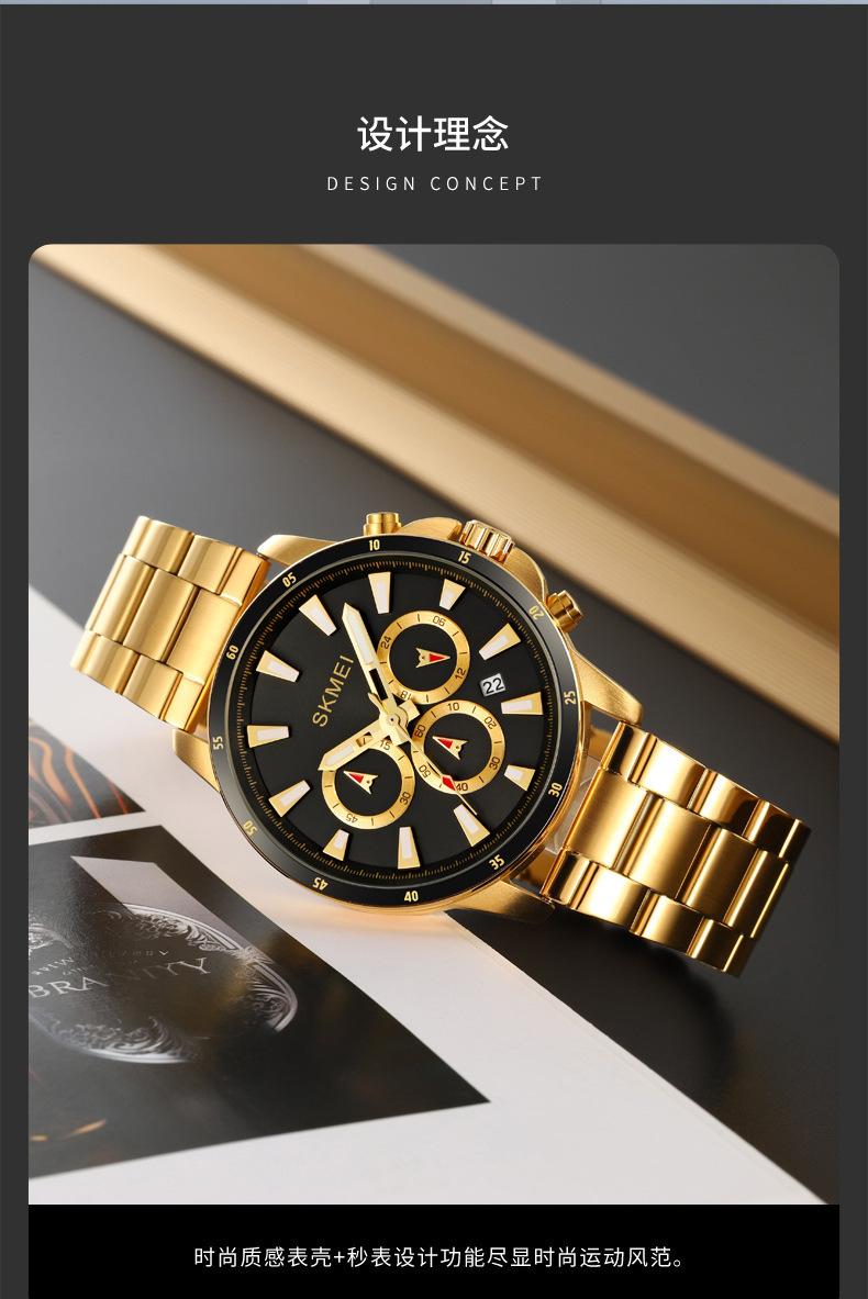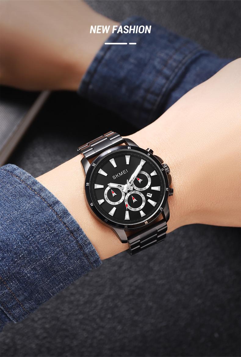 Relógio masculino de beleza de três olhos e seis pinos multifuncional relógio masculino clássico redondo grande mostrador relógio de quartzo relógio de pulso atacado