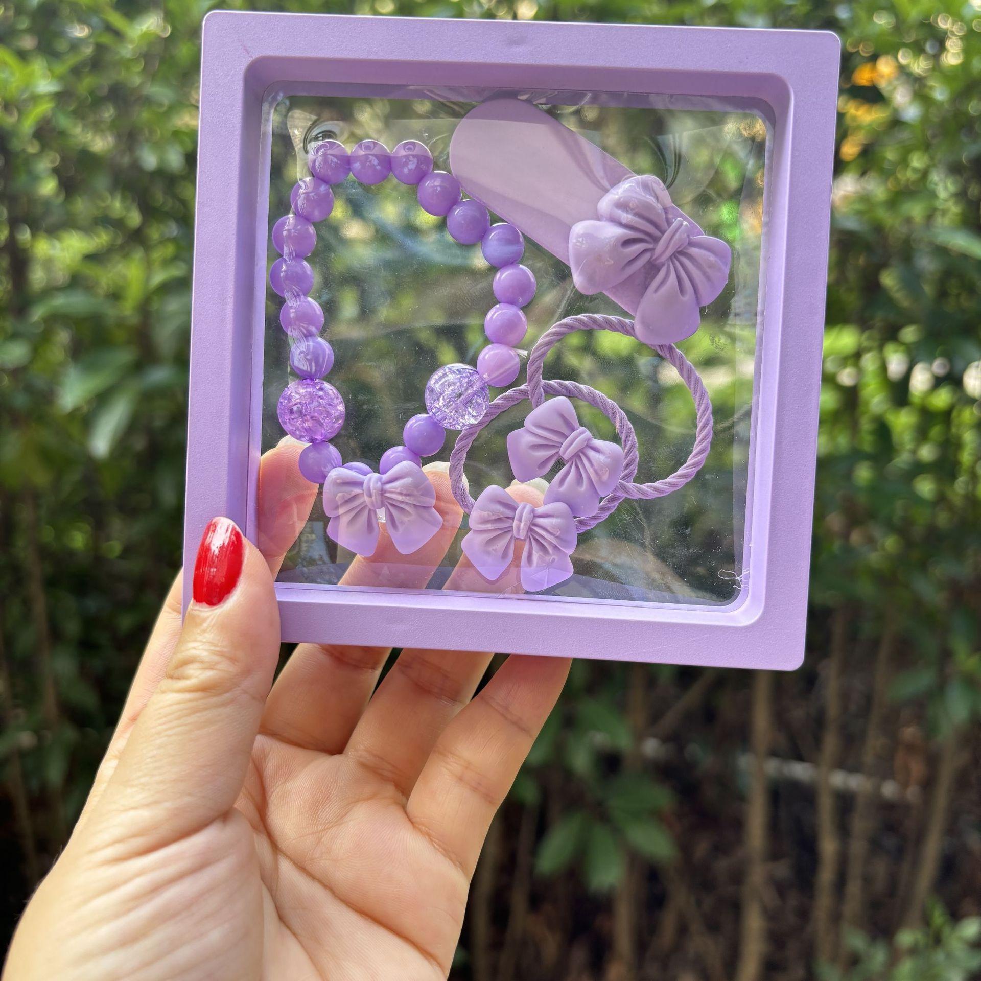 Pulseira infantil, conjunto de joias com miçangas, lindos laços de cabelo para bebês, grampos de cabelo, joias brilhantes, caixa de presente de princesa