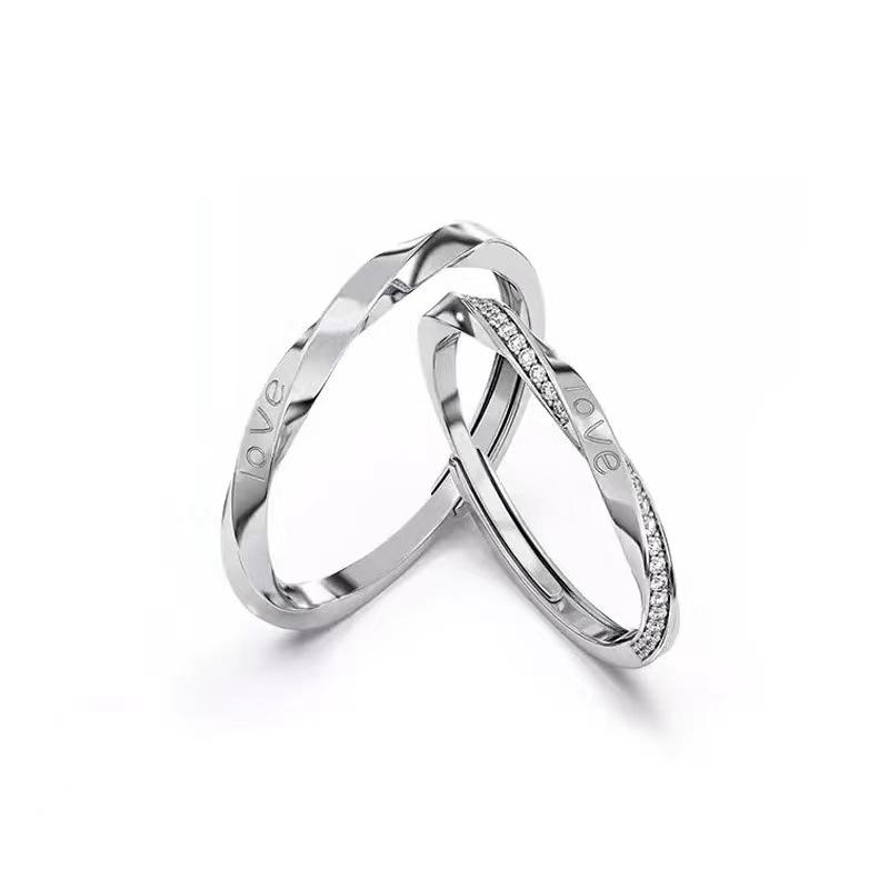 Anel Mobius Novo AMOR Anel de casal de amor s925 Prata esterlina Abertura Anel ajustável para namorada