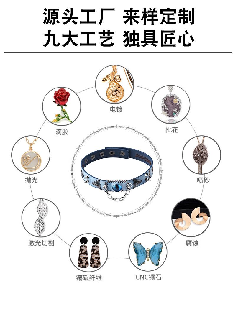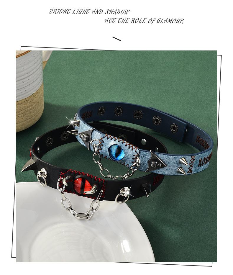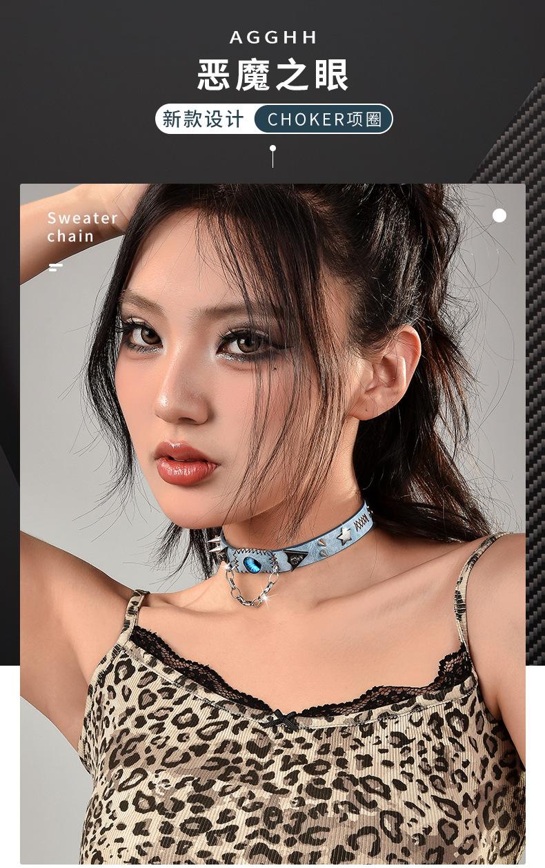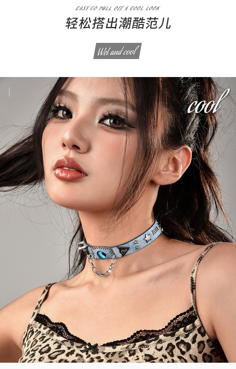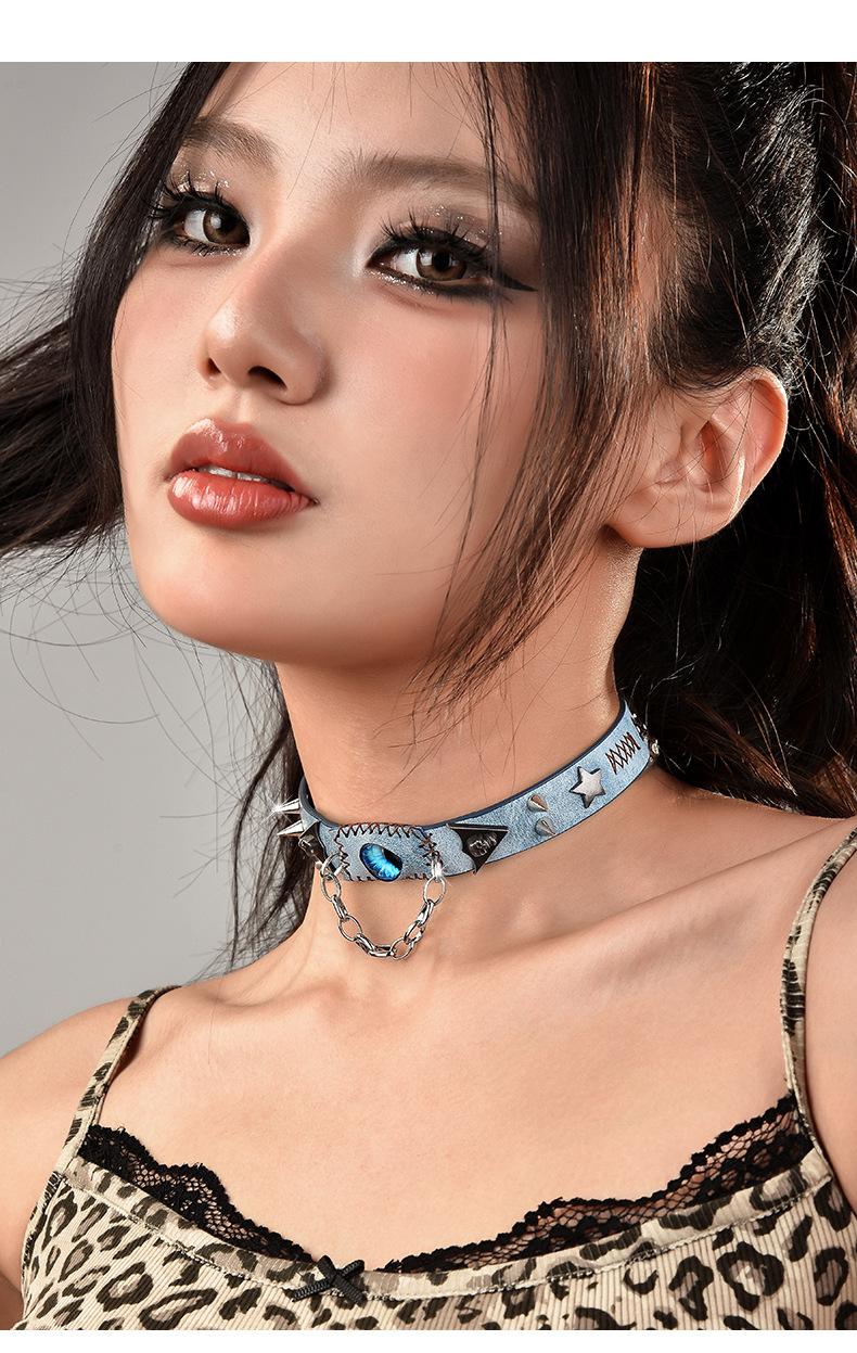 Gargantilha Harajuku com rebites, olhos azuis, subcultura, solo residual, vento, masculino e feminino, colar de maré