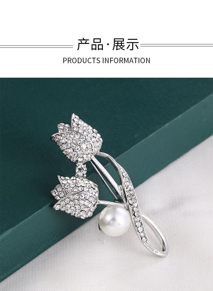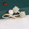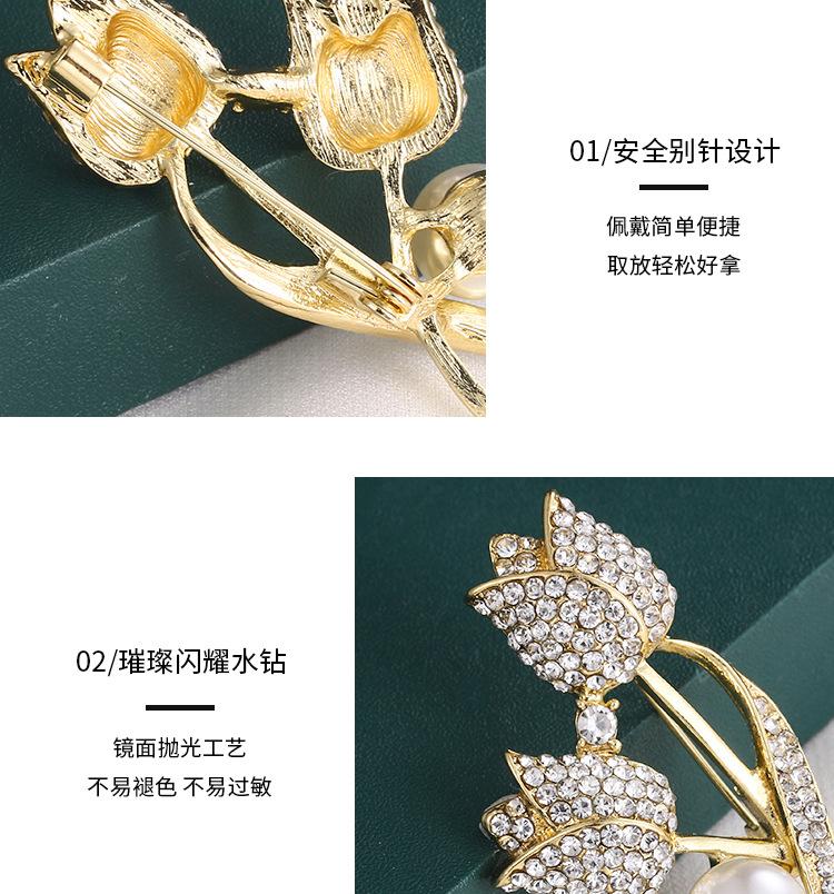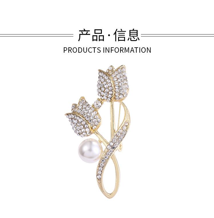Broche Flor Tulipa Pérola Strass Corsage Acessórios Casaco Terno Feminino Luxo Leve Alfinete Broche Tulipa