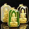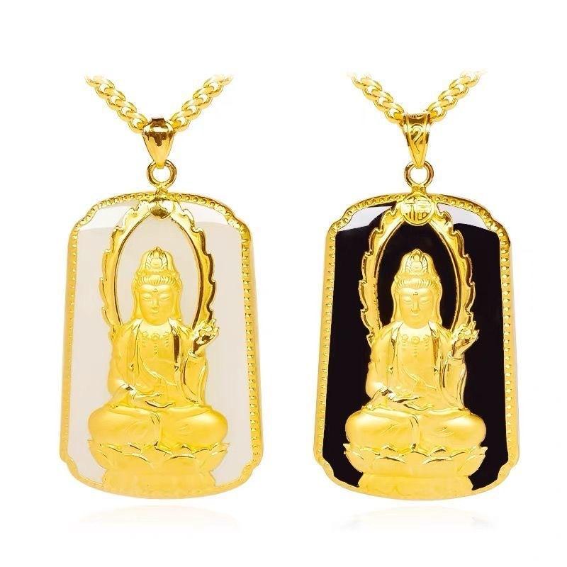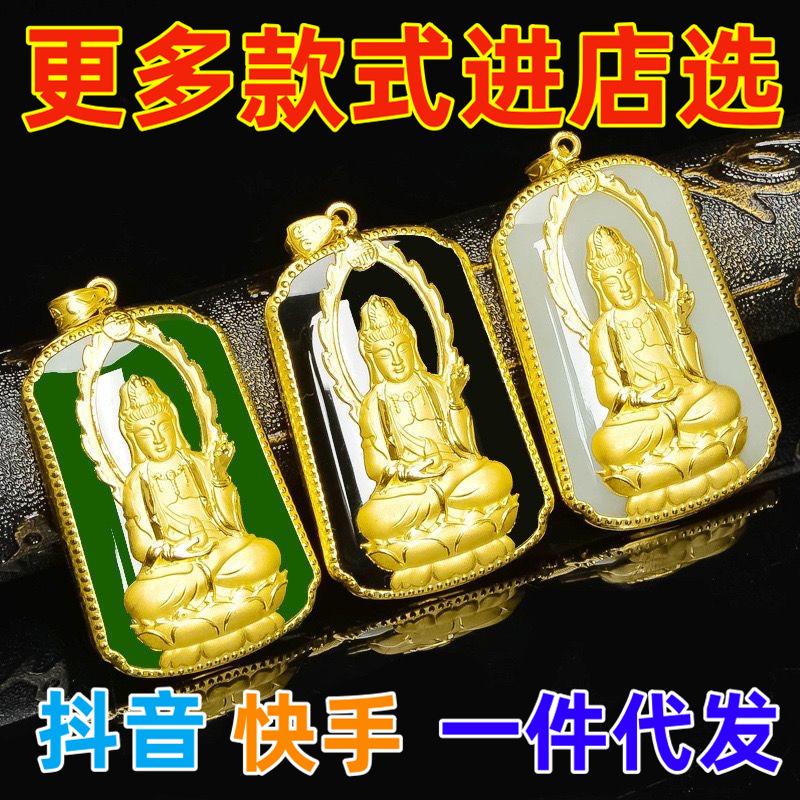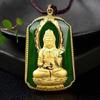 Pingente Guanyin Verde Imperador de Ouro Areia Vietnamita Pingente Bodhisattva Patrono São Guanyin Masculino e Feminino Pingente Quadrado Buda Natal