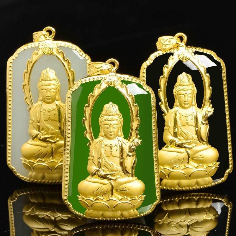 Imperial green guanyin pendant, Dark black guanyin pendant, White guanyin pendant