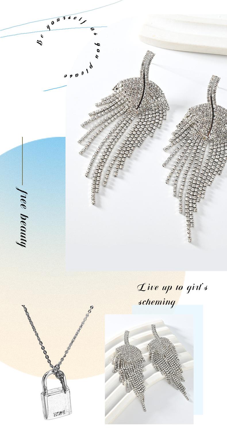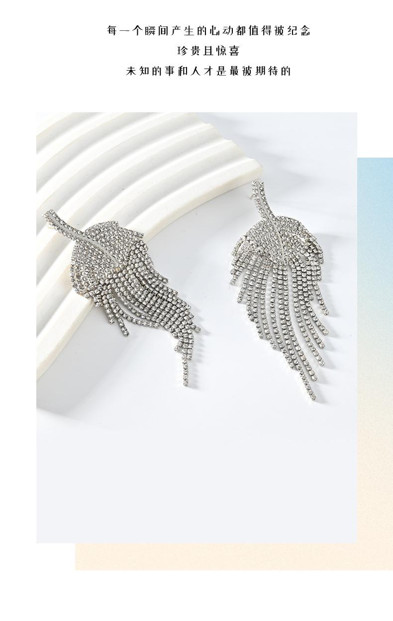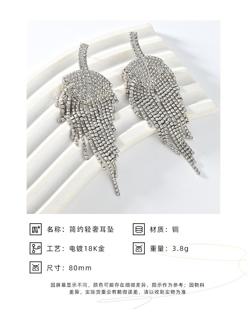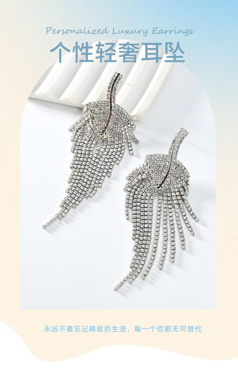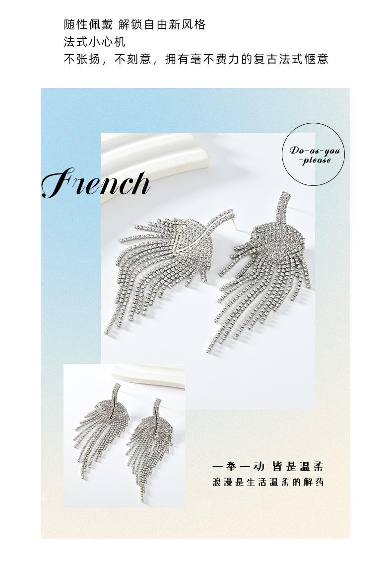 Agulha de prata Moda Strass Folha Borla Brincos Longos Ins Internet Celebridade Exagerado Europeu e Americano Temperamento High-end Brincos para Mulheres