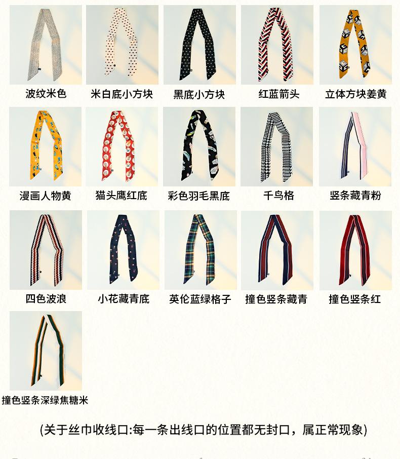 Camisa pequena de gravata fina e estreita de alta qualidade com 90 cm impressa com lenço de seda, fita feminina, laço de cabelo, cinto de embrulho de cabelo