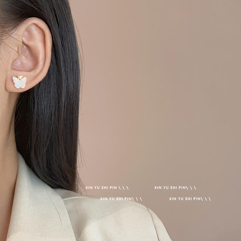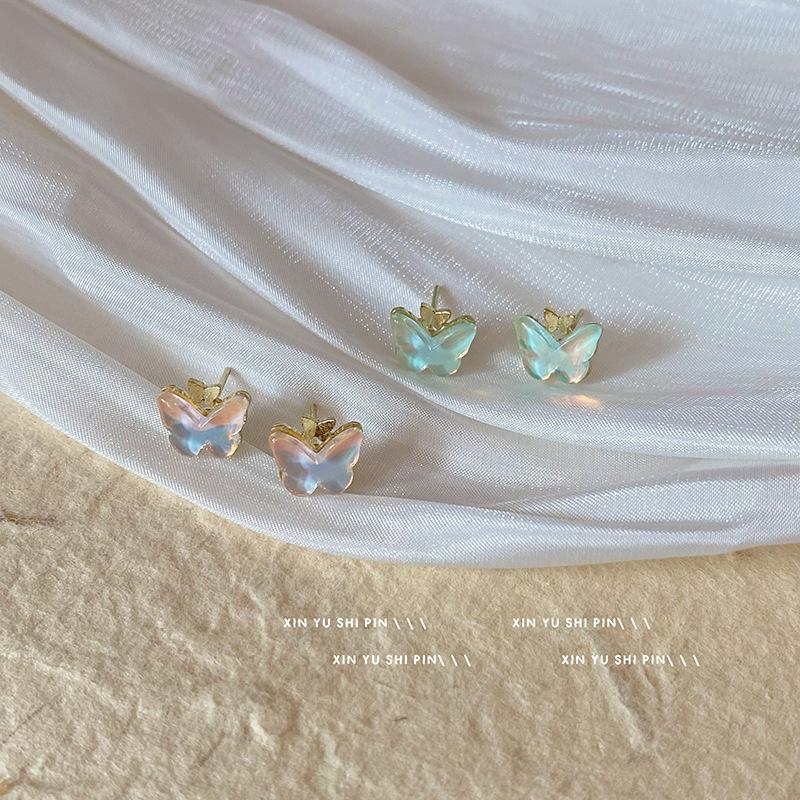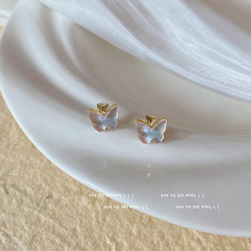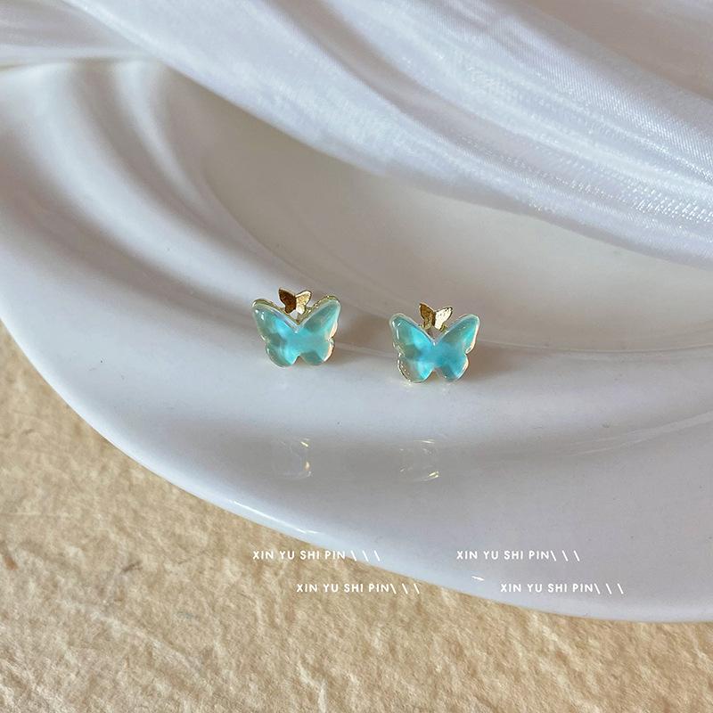 Compre Rosa Azul Pequena Borboleta Brincos Super Fada Temperamento Luz Luxo High-end Sense Brincos Pequenos Feminino Nicho Design Sense Sweet Brincos no atacado no Joom.pro