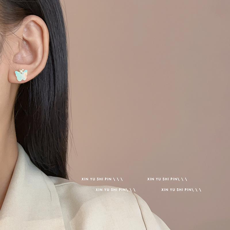 Rosa Azul Pequena Borboleta Brincos Super Fada Temperamento Luz Luxo High-end Sense Brincos Pequenos Feminino Nicho Design Sense Sweet Brincos