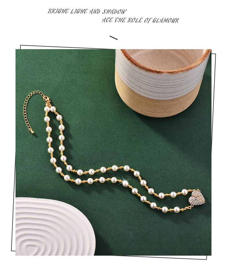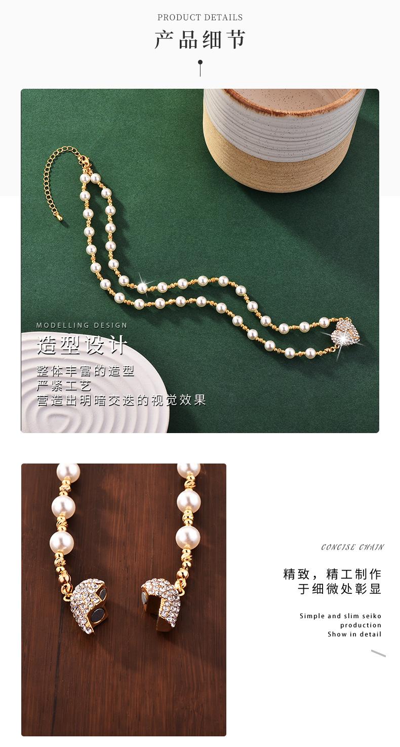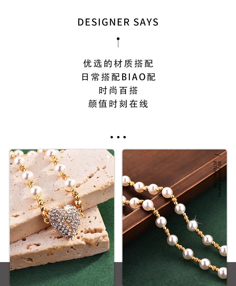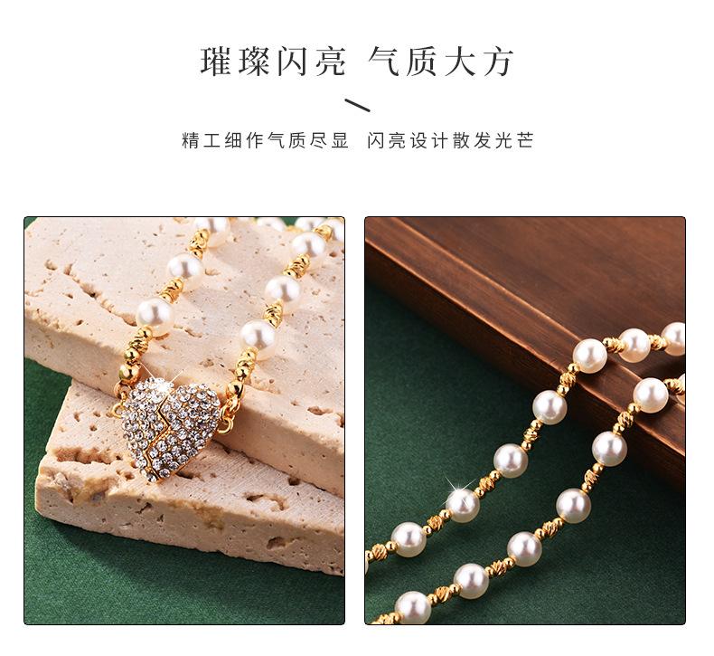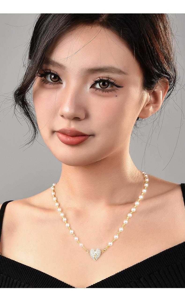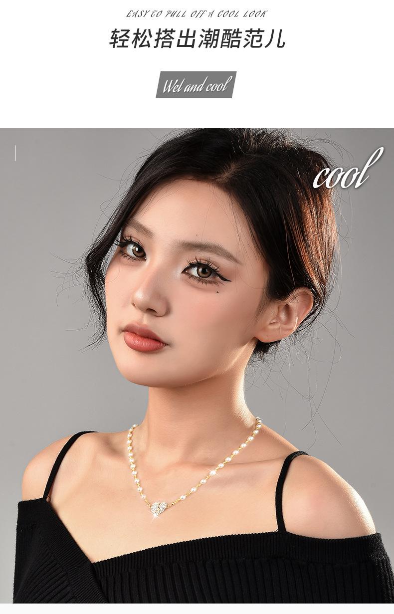Colar de pérolas com pingente magnético em forma de coração, incrustado de diamantes de alta qualidade, design de nicho de luxo leve, temperamento versátil, corrente de clavícula