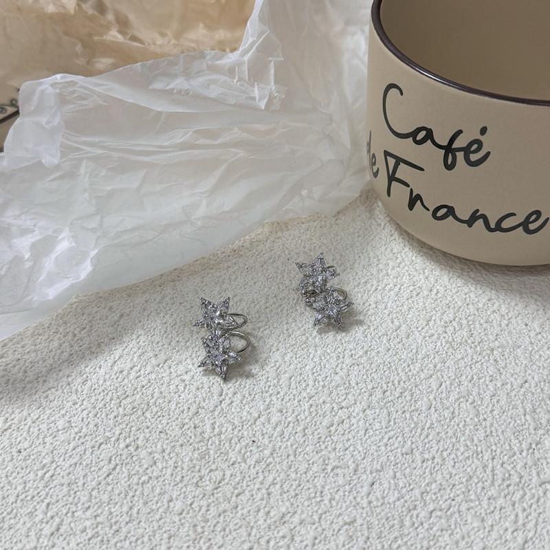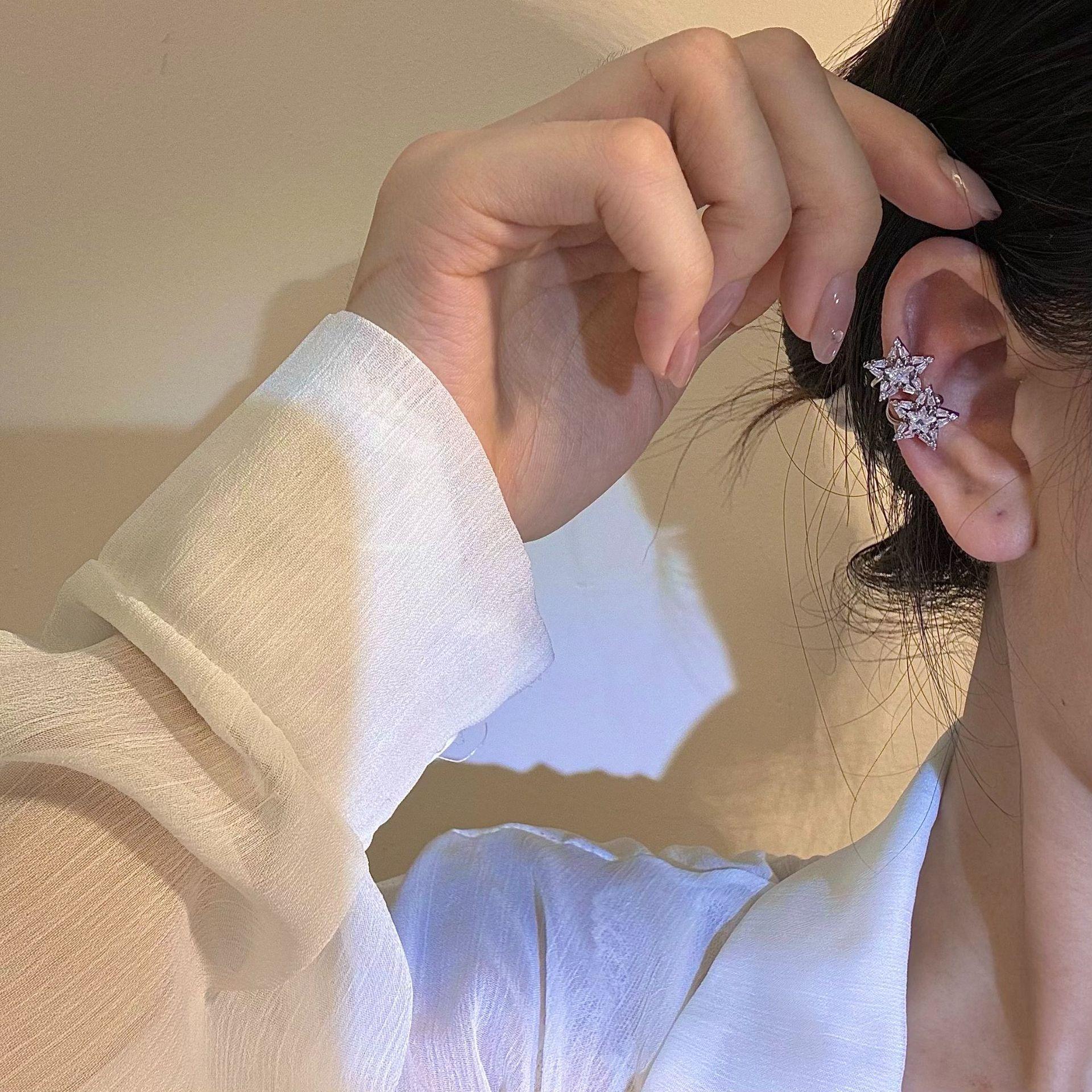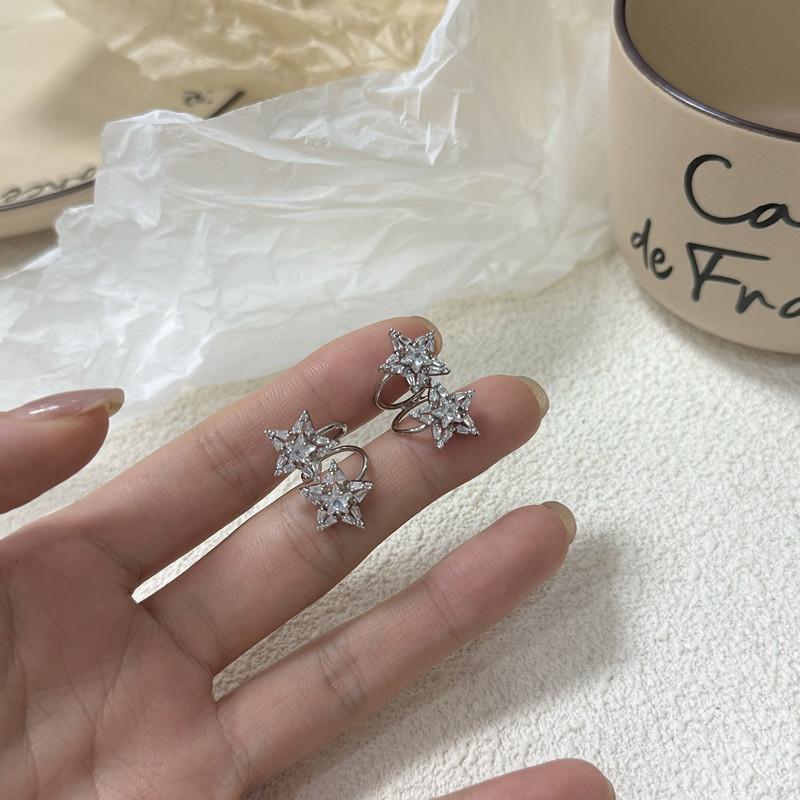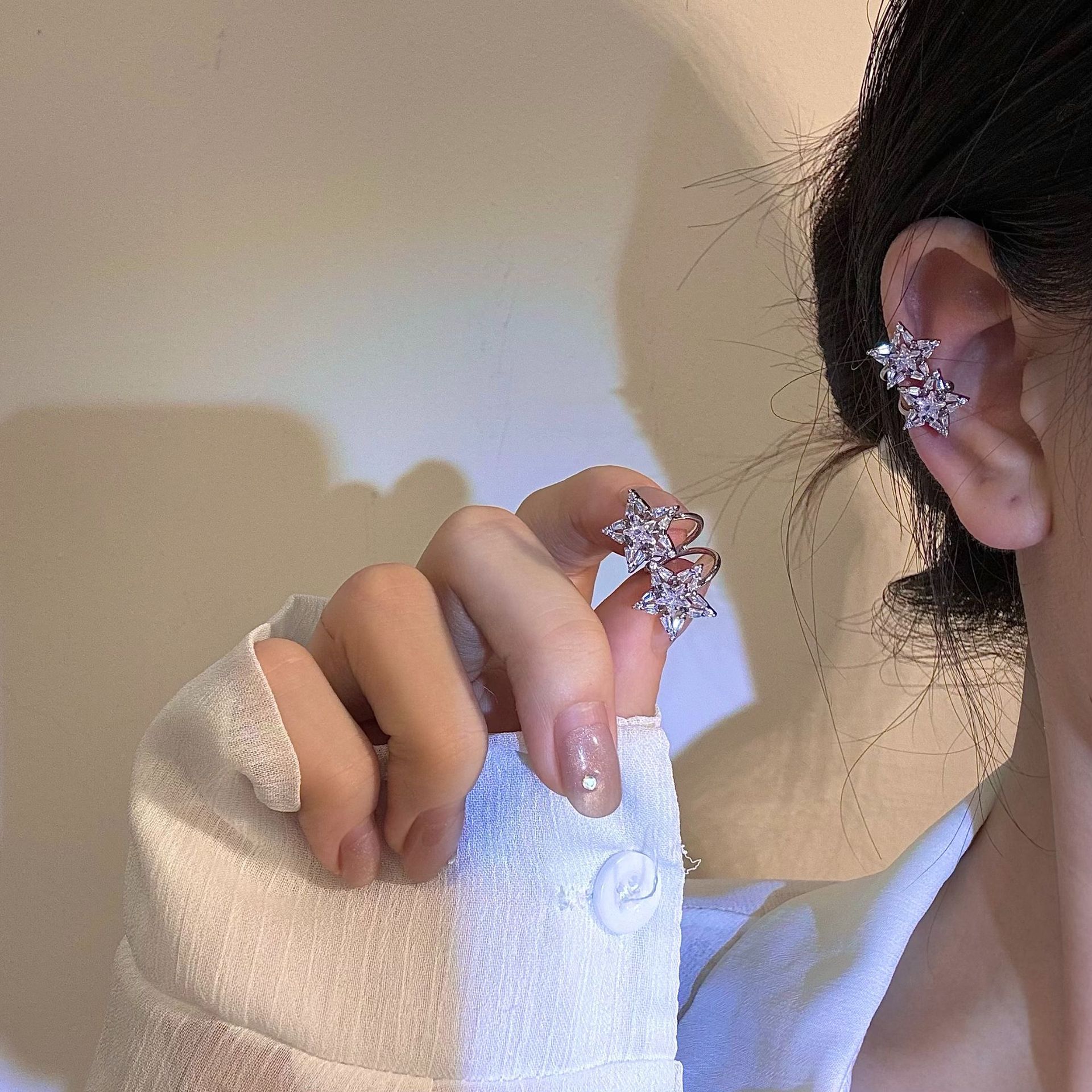 Compre Elegante Luz Luxo Oco Diamante Estrela Clipe de Orelha Feminino Simples All-match Brincos de Clipe de Orelha Sem Furos de Orelha no atacado no Joom.pro