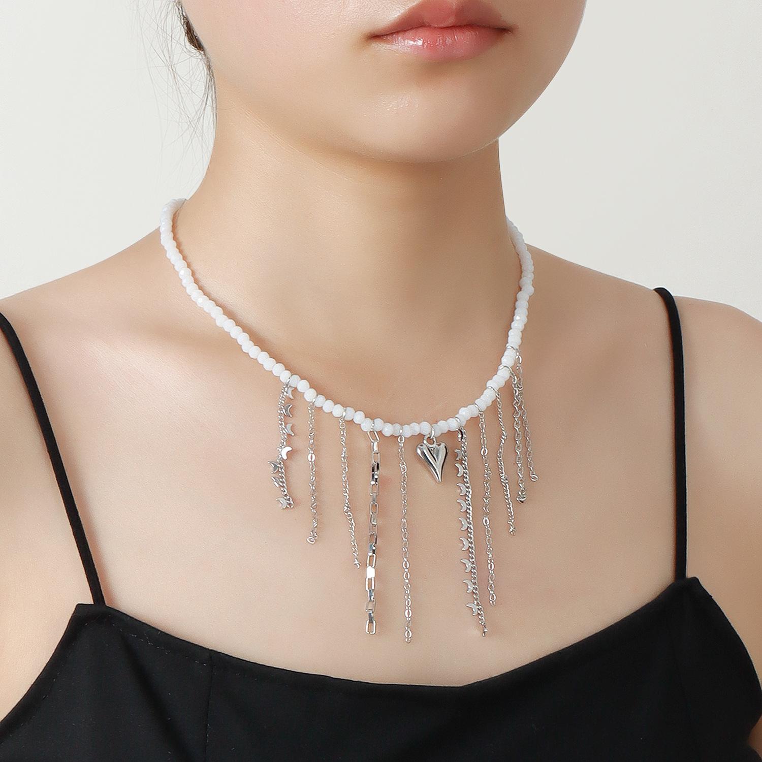 Europa e Estados Unidos jóias transfronteiriças temperamento borla lua estilo colar nicho tridimensional amor Coringa colar clavícula cadeia