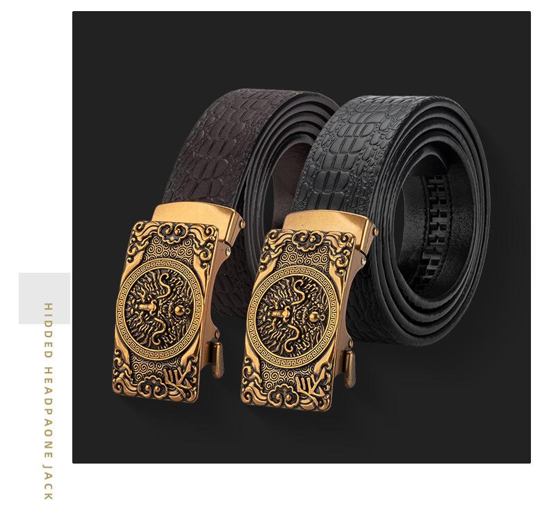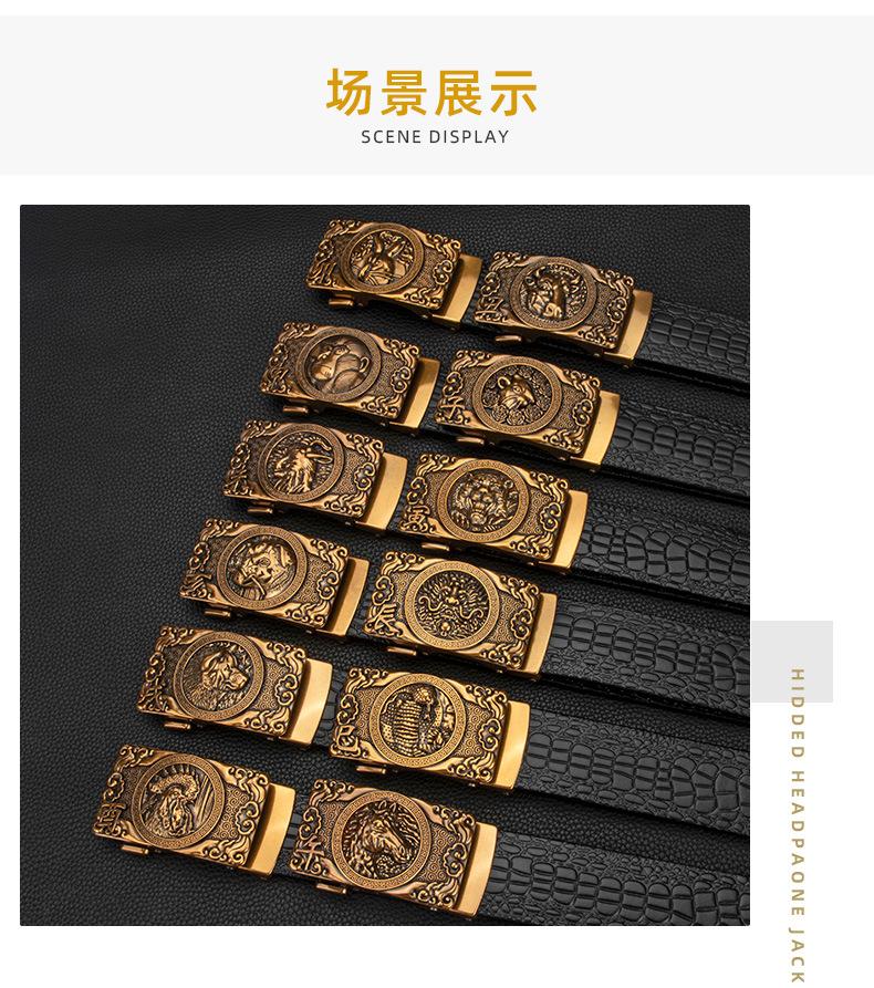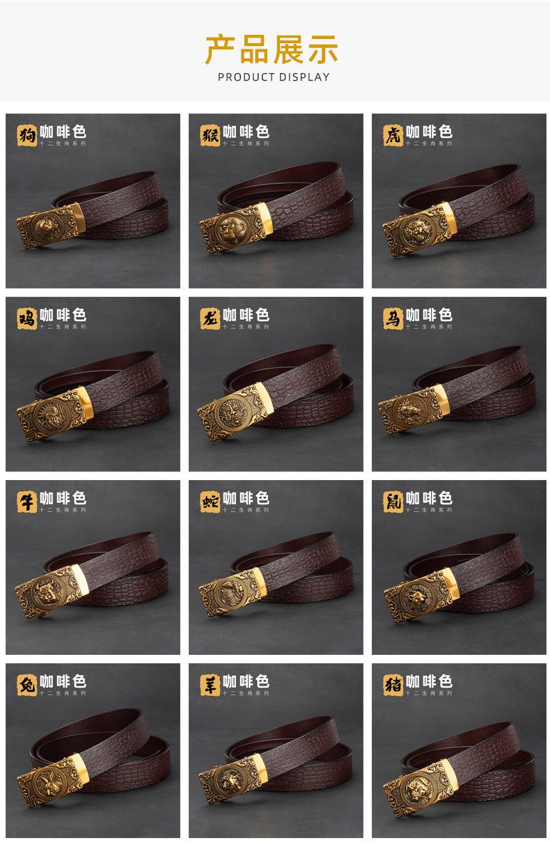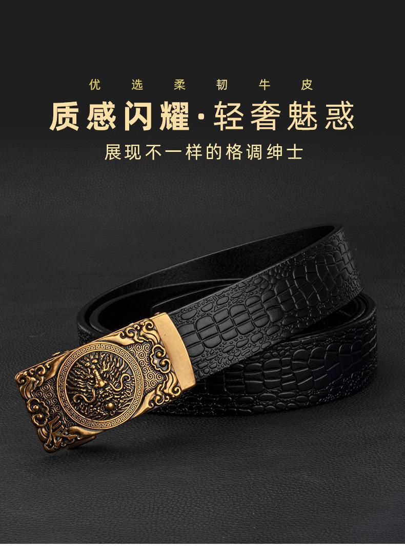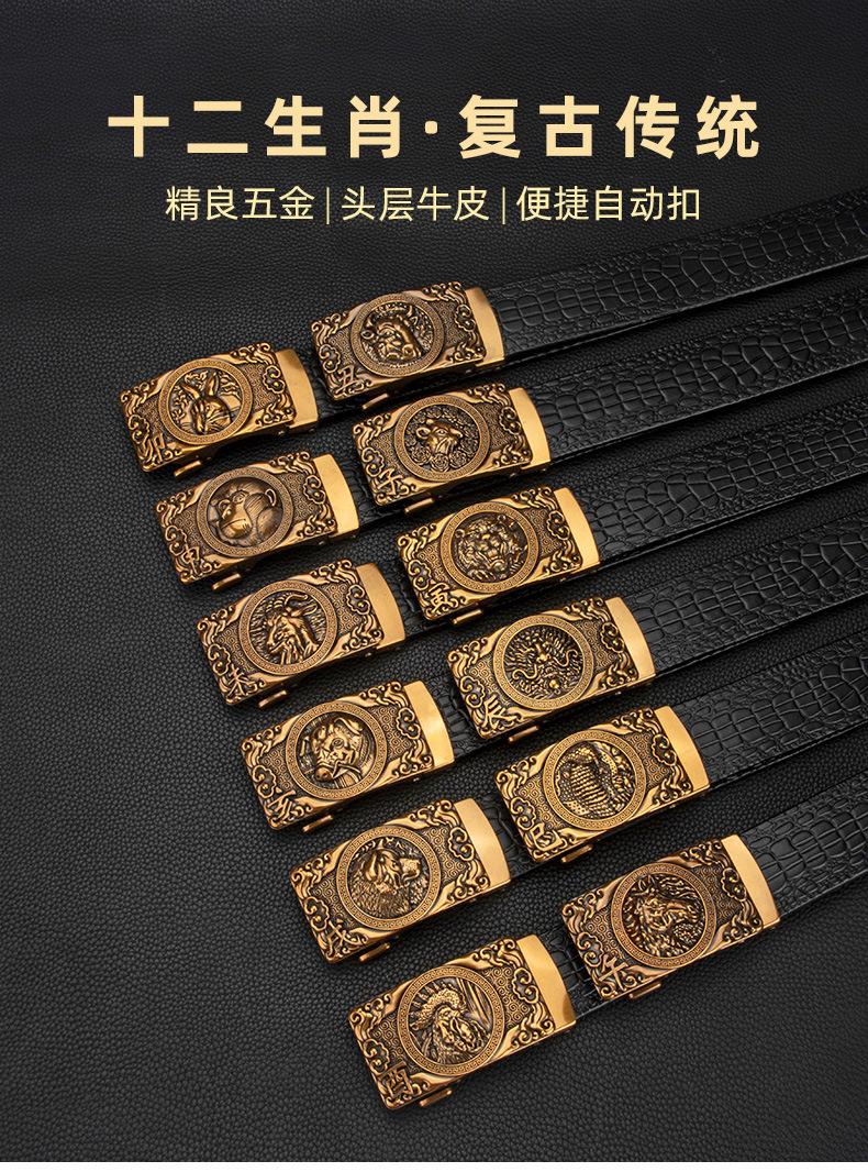 Cinto de couro genuíno masculino Zodiac Alloy Fivela automática Moda Top Layer Cowhide Jeans Cinto Masculino Cross-border