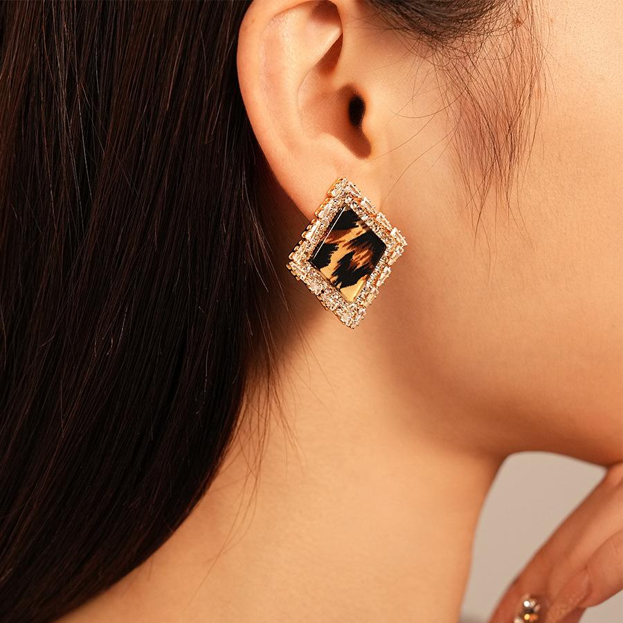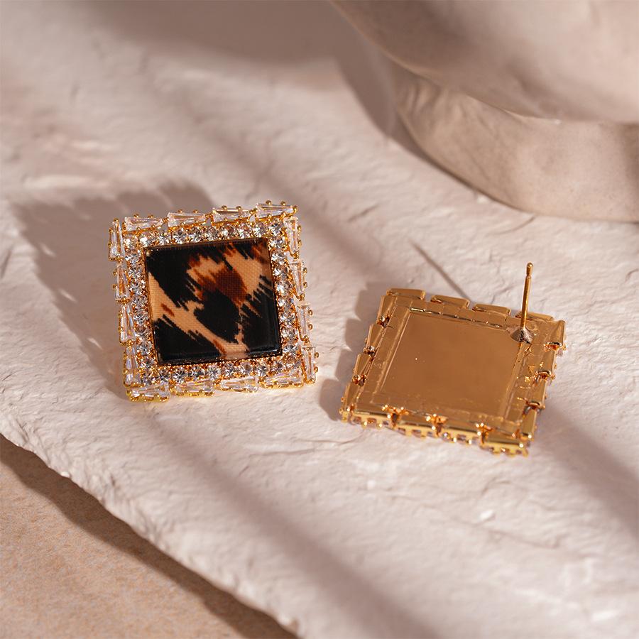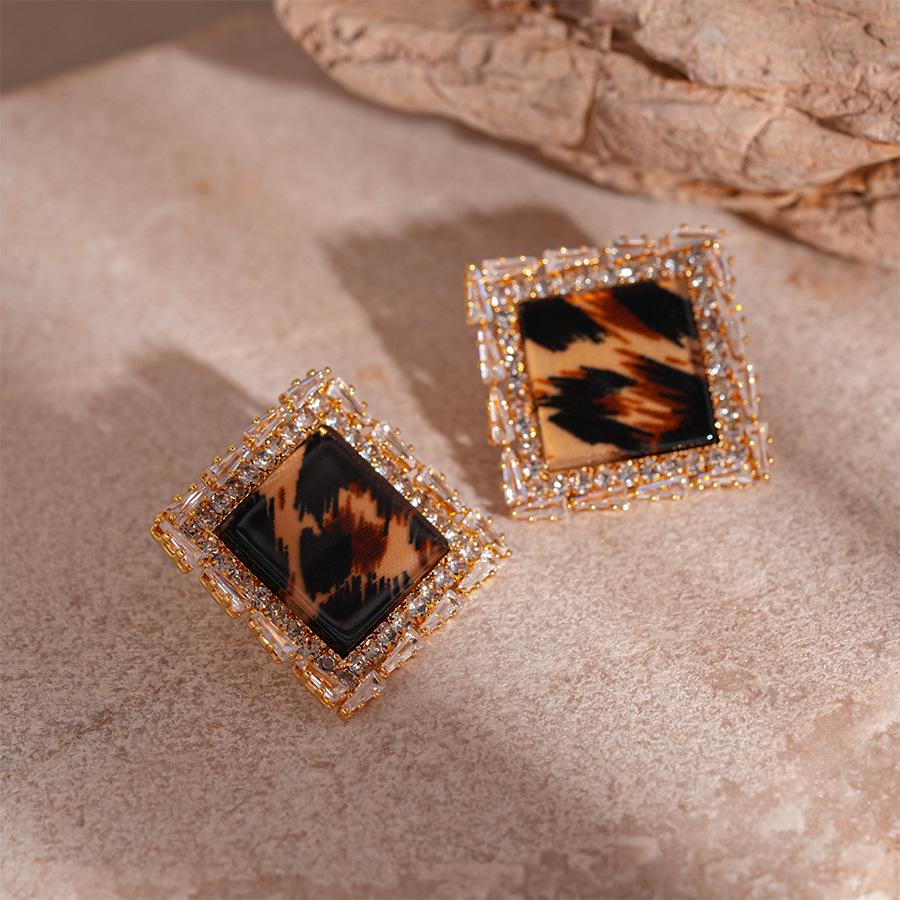 Silver Needle-Square Zircon Leopard Stud Earrings