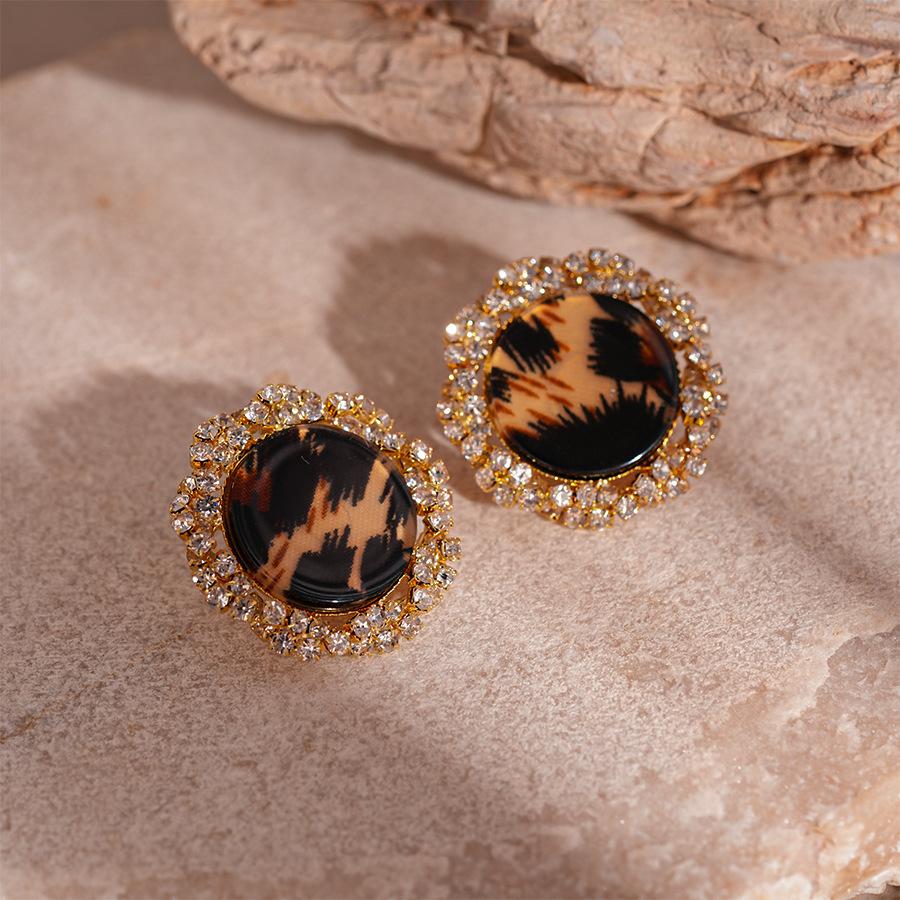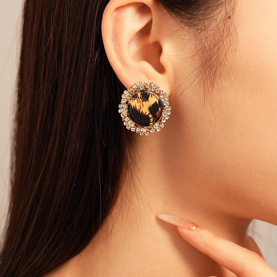 Silver Needle-Round Zircon Leopard Stud Earrings