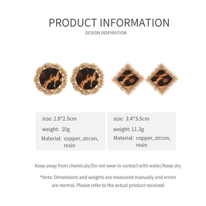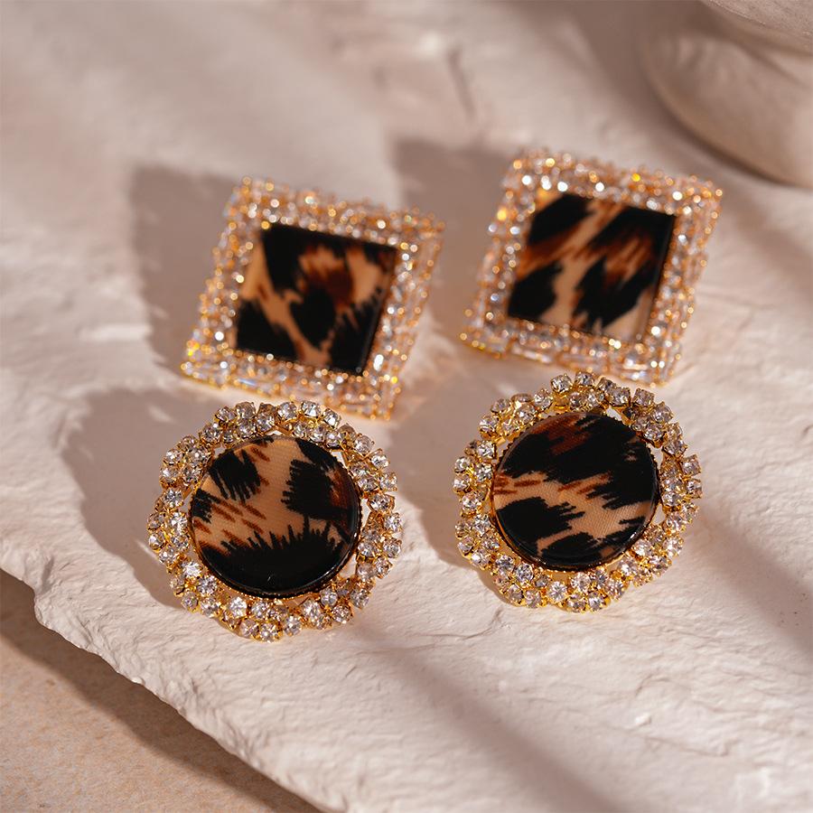 Silver Needle-Square Zircon Leopard Stud Earrings, Silver Needle-Round Zircon Leopard Stud Earrings