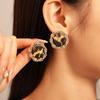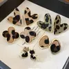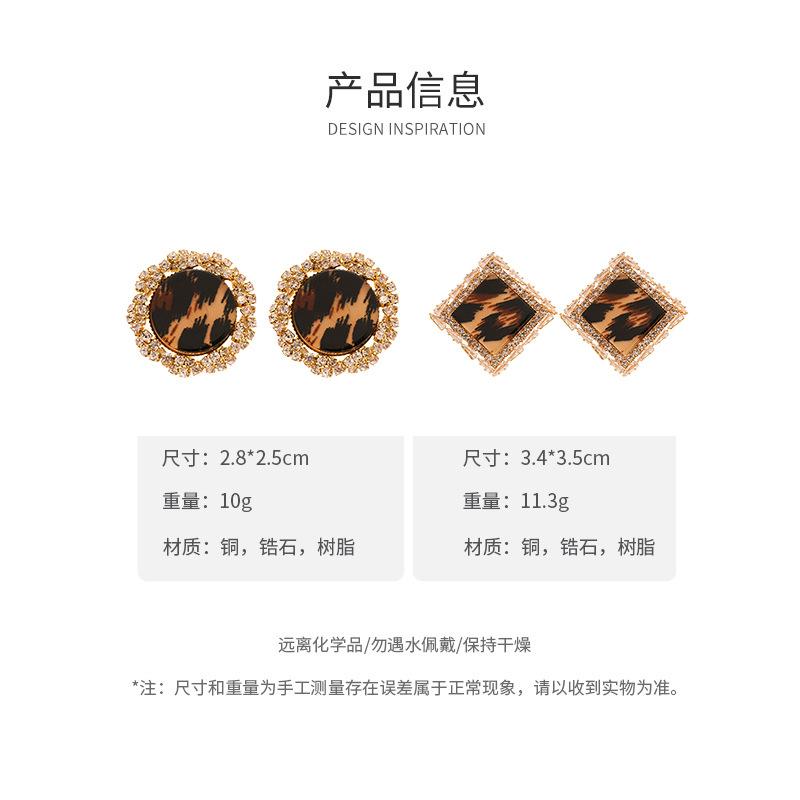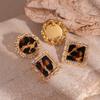 Brincos de pino de prata redondos quadrados com estampa de leopardo de resina vintage, brincos de nicho de moda europeia e americana, brincos de alta qualidade para mulheres