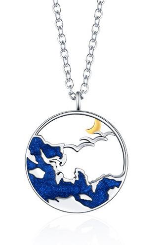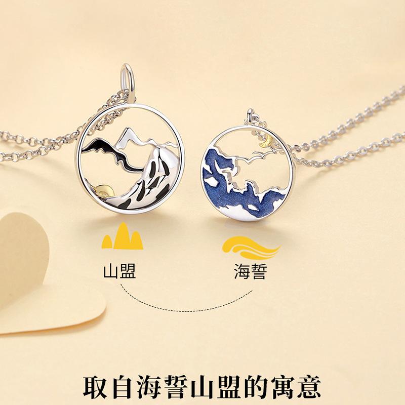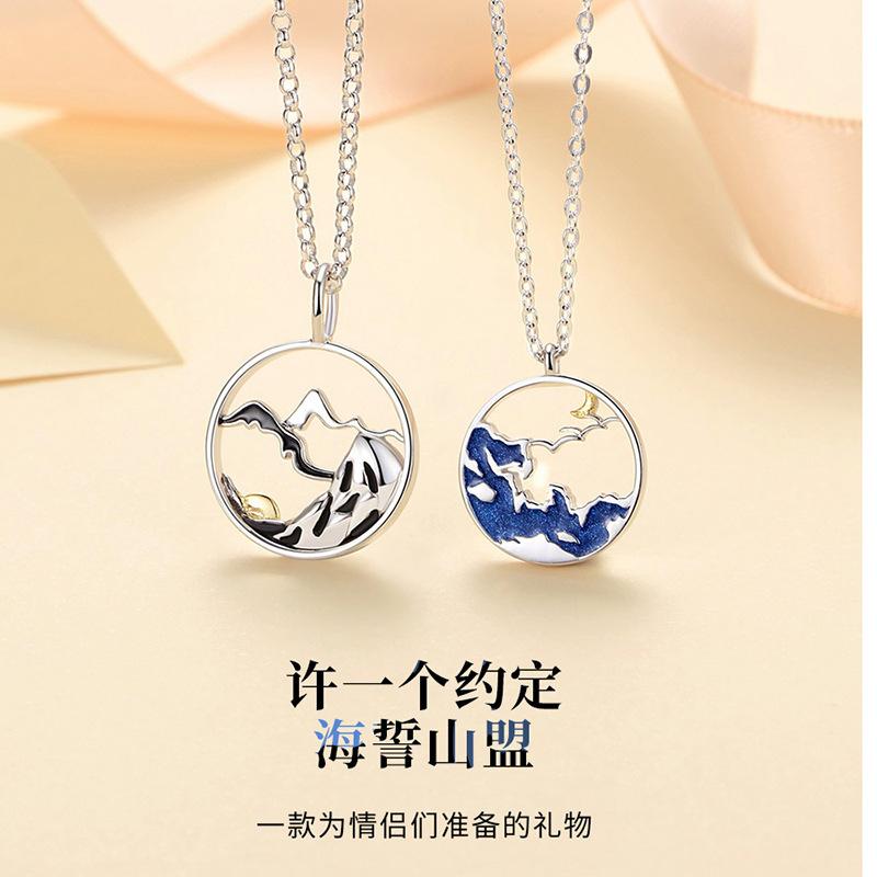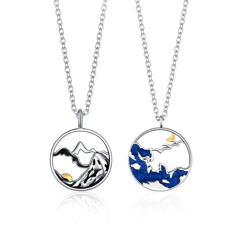 Colar de casal de promessa de montanha de esmalte para homens e mulheres, design original de casal, presente de moda de amor à distância, nicho
