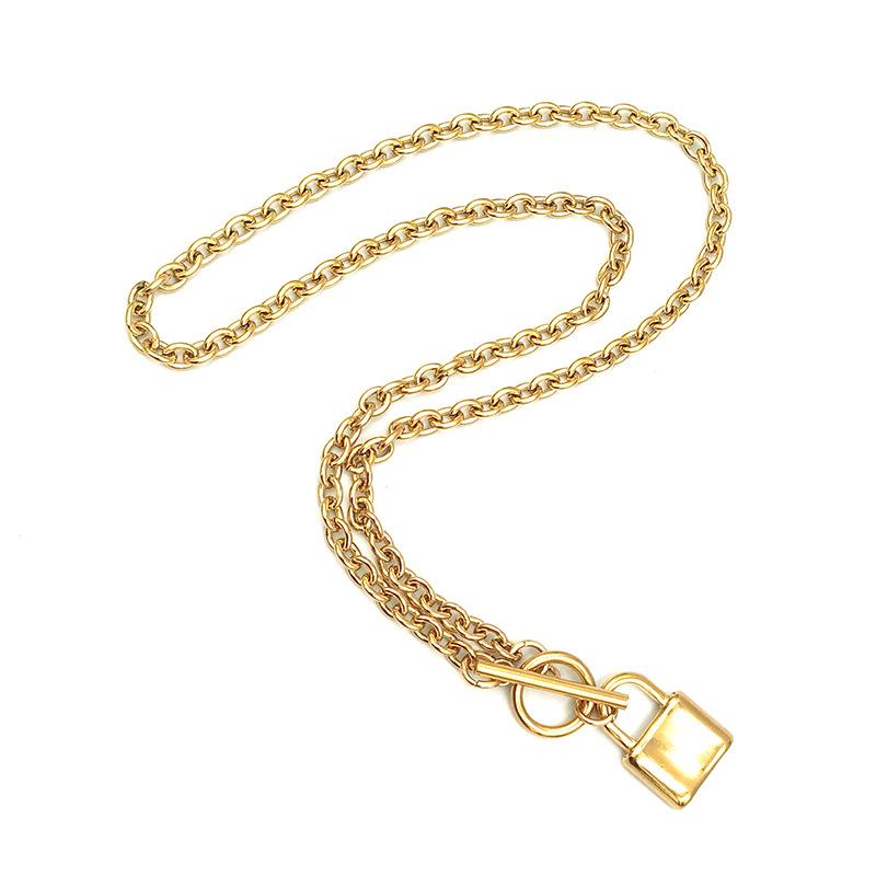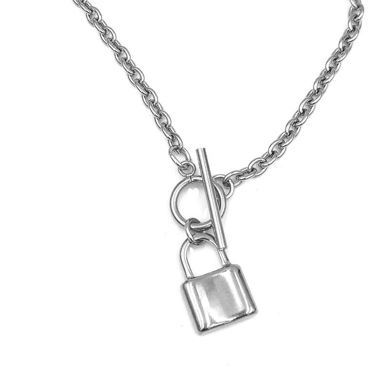 Colar de aço titânio colar de cadeado de aço inoxidável colar de cadeado de corrente cruzada de retenção de cor de corrente cruzada rock tendência jóias simples