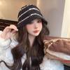 2024 novo outono e inverno ins listrado all-match chapéu de pescador coreano cor combinando moda quente malha bacia chapéu balde chapéu