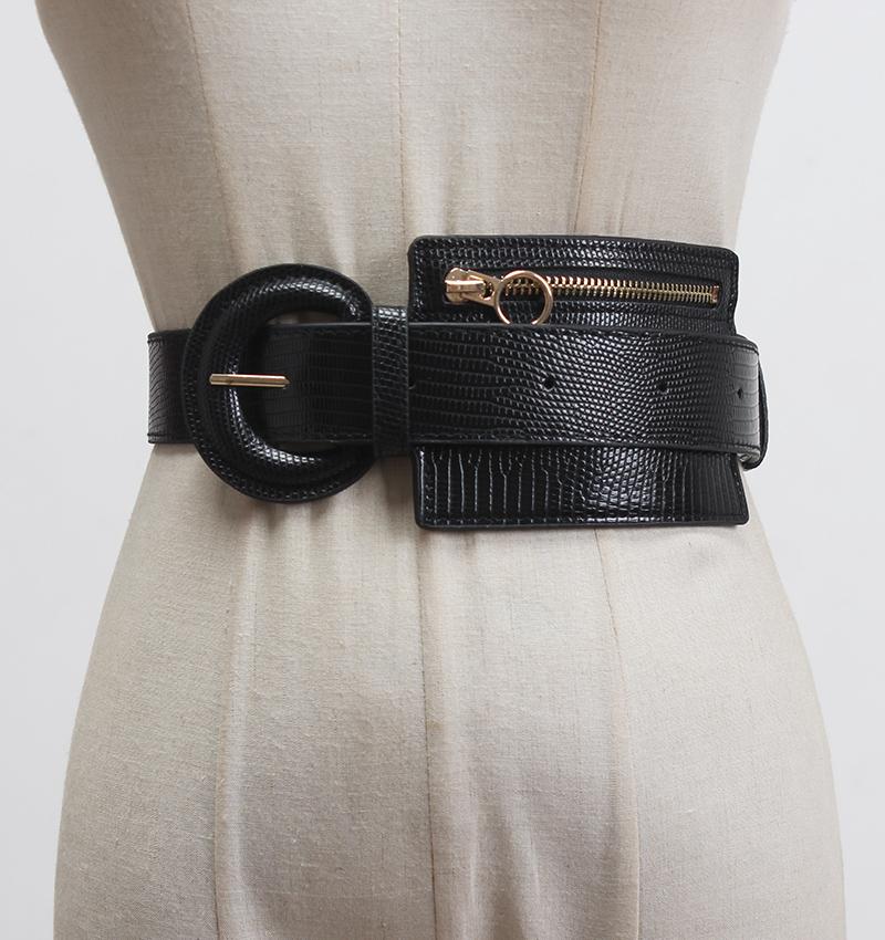 Compre 2020 novo estilo coreano pele de cobra PU couro cintura selo costura zíper pequeno saco decoração com vestido saia cinto cinto moda no atacado no Joom.pro