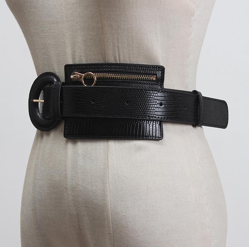 2020 novo estilo coreano pele de cobra PU couro cintura selo costura zíper pequeno saco decoração com vestido saia cinto cinto moda