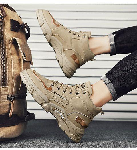 Tênis Masculinos Cano Alto 2025 Inverno Novo Estilo Workwear Outdoor Caminhada Inverno Forrado com Lã Sapatos de Algodão Proteção do Trabalho Canteiro de Obras Botas Martin
