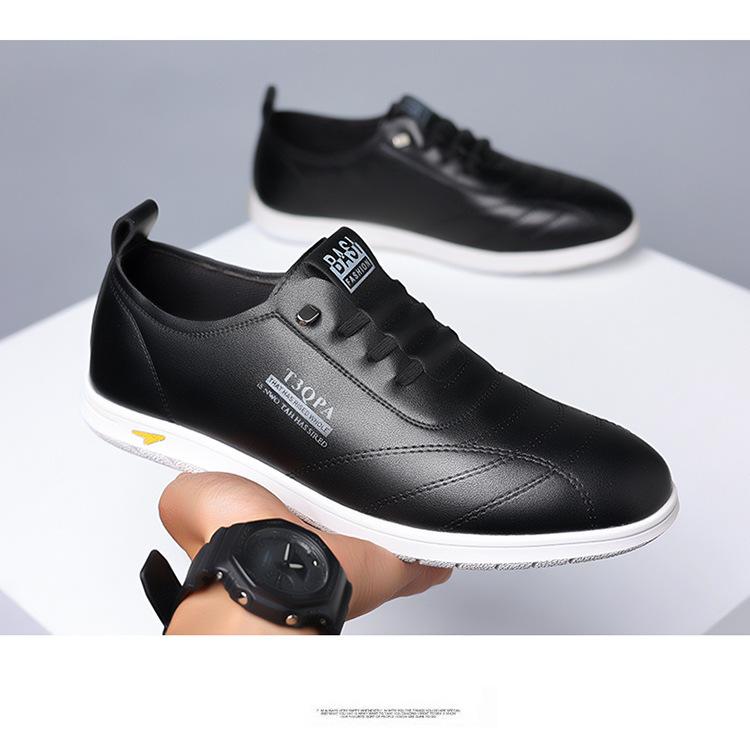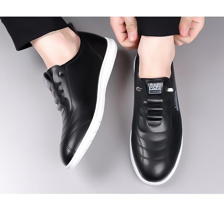 Compre Outono Novos Sapatos Masculinos Casuais de Couro Sapatos Brancos da Moda All-match Sola Macia Antiderrapante Resistente ao Desgaste Sapatos de Couro Slip-on no atacado no Joom.pro