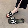 Chinelos de fundo macio para mulheres 2024 primavera e verão novos sapatos de meia pérola para uso externo Sandálias planas antiderrapantes para mulheres grávidas