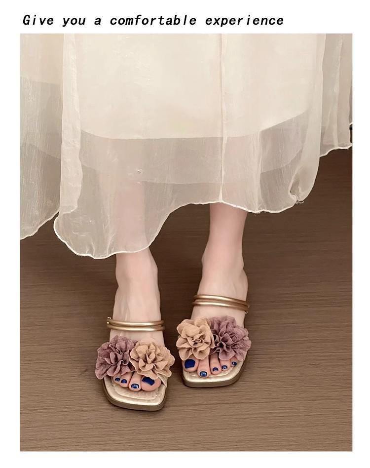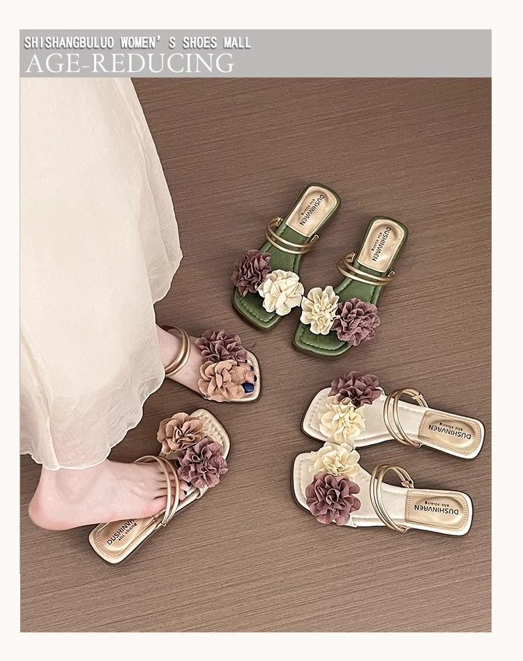 Vestido Estilo Fada Flor Vintage Estilo Nacional Roupa Exterior Feminina 2024 Verão Novo Chinelos Confortáveis para Férias