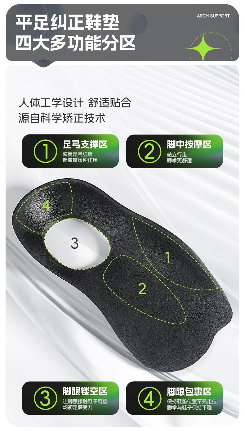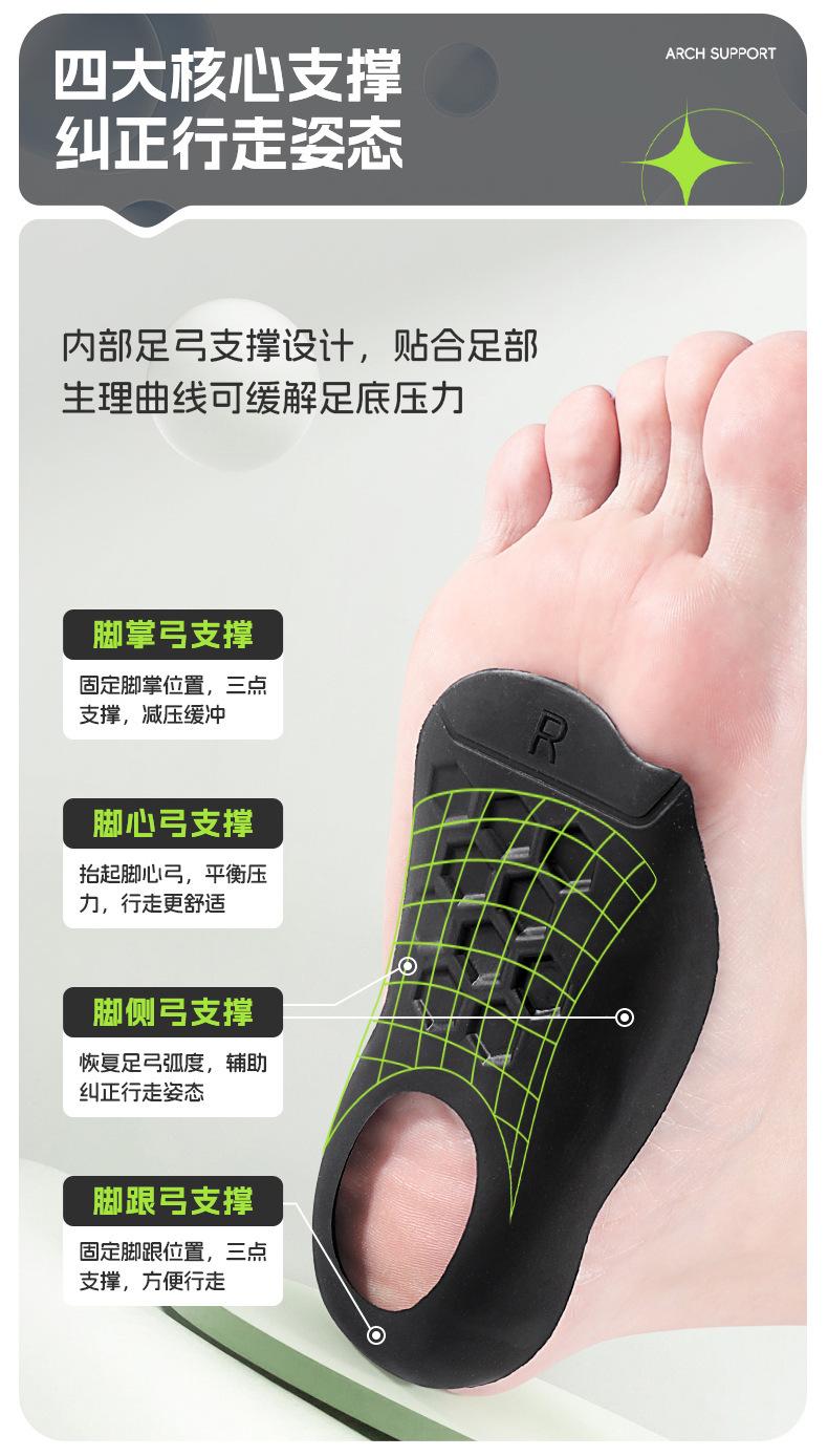 Ortese de arco de pé plano varo valgo meia almofada interna e externa oito pernas palmilha calcanheira meia almofada fronteiriça