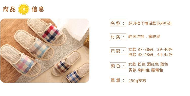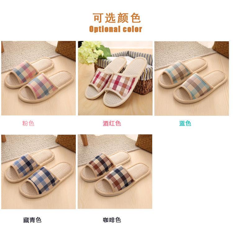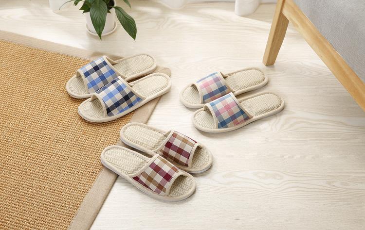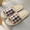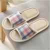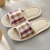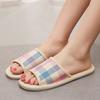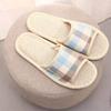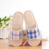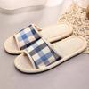 Chinelos de linho xadrez Four Seasons para homens de verão interno para casa antiderrapante com piso de madeira chinelos de tecido de linho de algodão estilo japonês para mulheres e casal