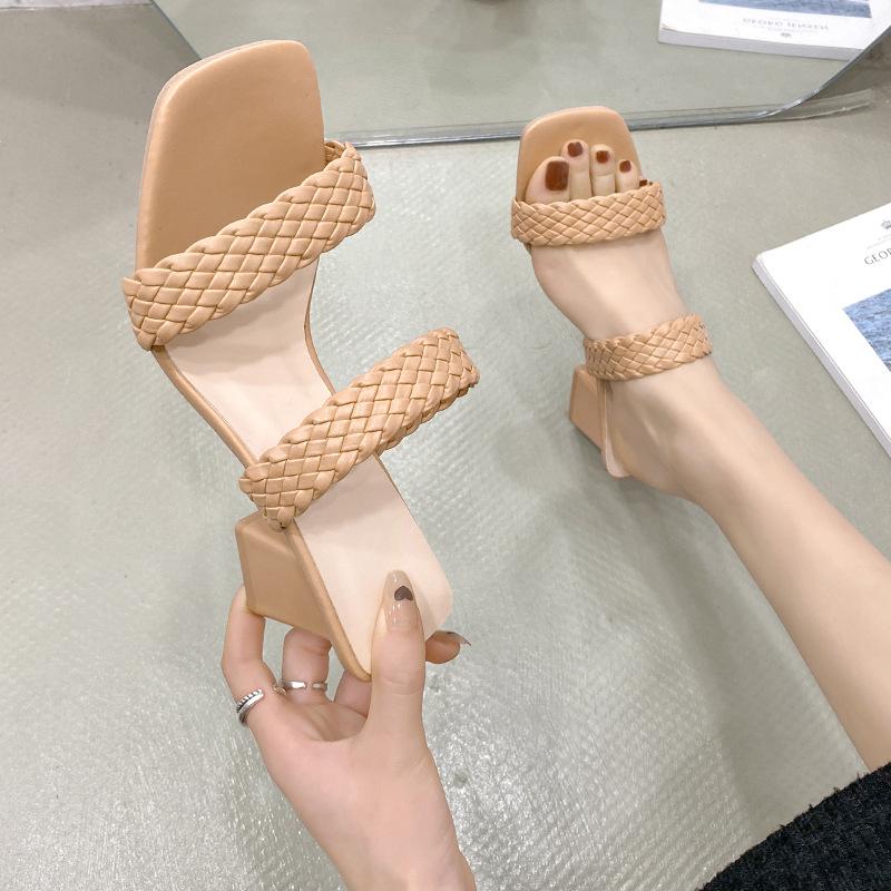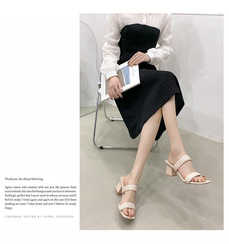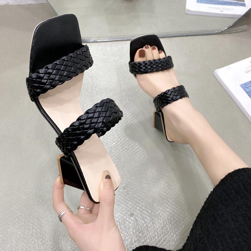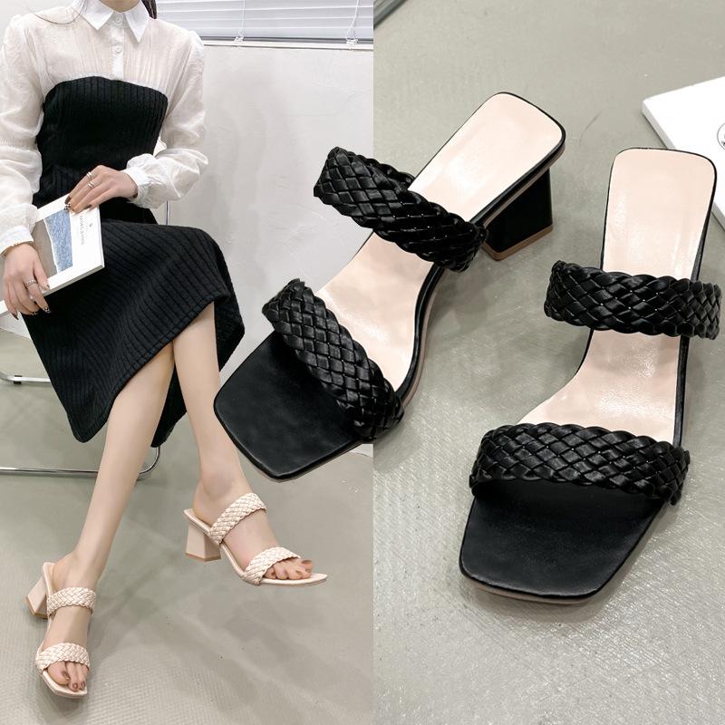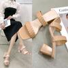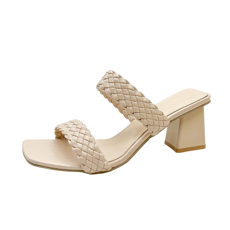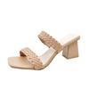 2023 Verão Novos Chinelos Romanos Trançados Femininos Estilo Étnico Boêmio Tamanho Grande Salto Grosso Sapatos Femininos Da Moda
