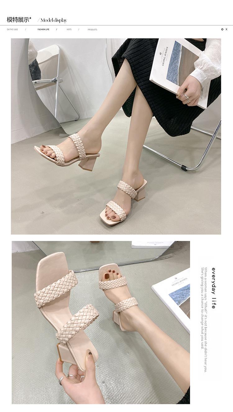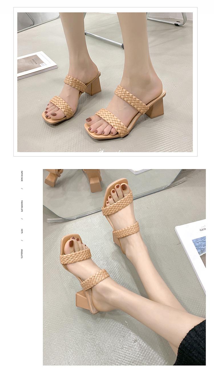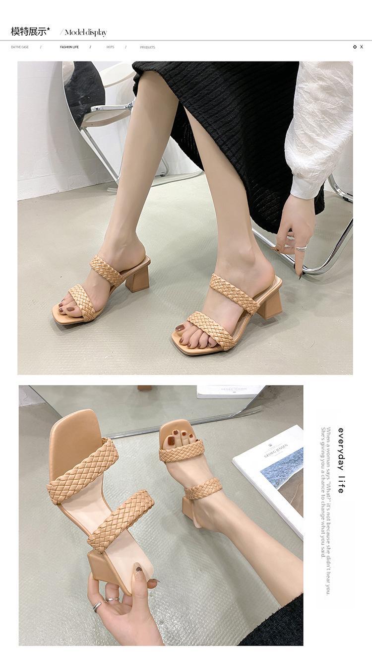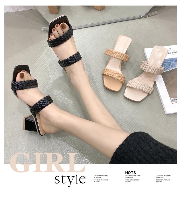 2023 Verão Novos Chinelos Romanos Trançados Femininos Estilo Étnico Boêmio Tamanho Grande Salto Grosso Sapatos Femininos Da Moda