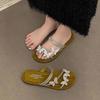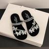 2024 Verão Novo Strass Fundo Macio Desgaste Externo Arco Sandálias Planas Estilo Fada Vestido Chinelos de Praia