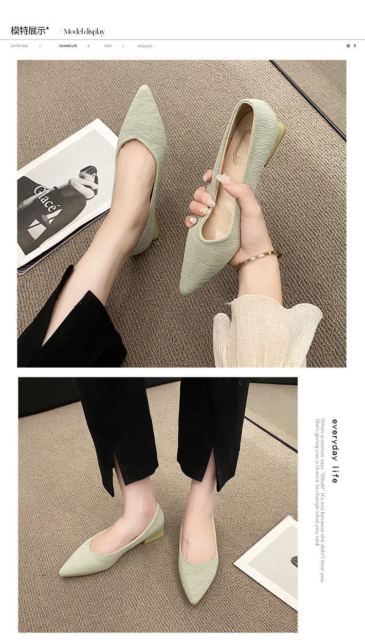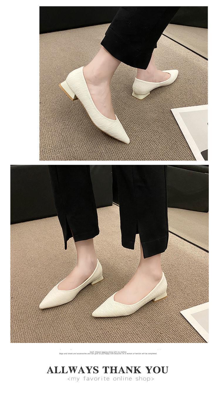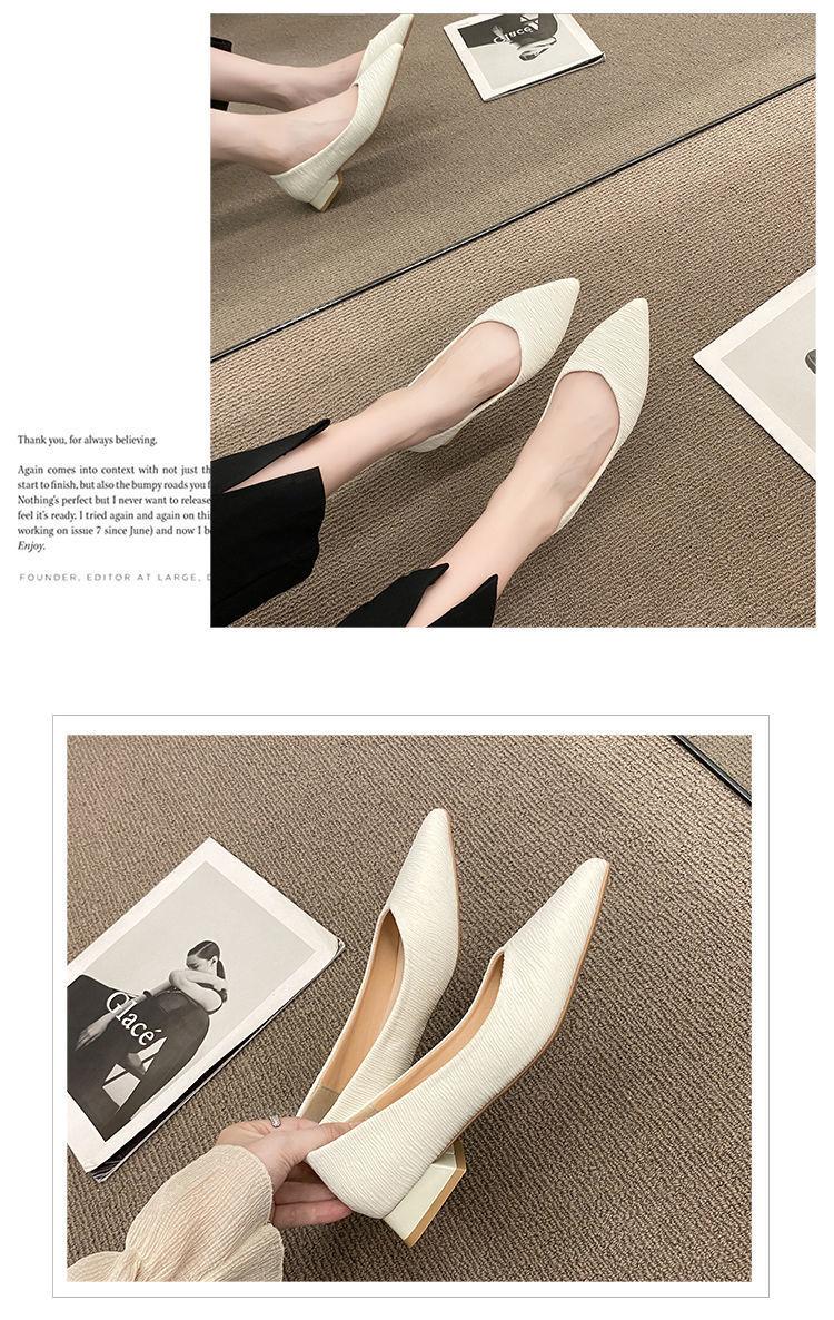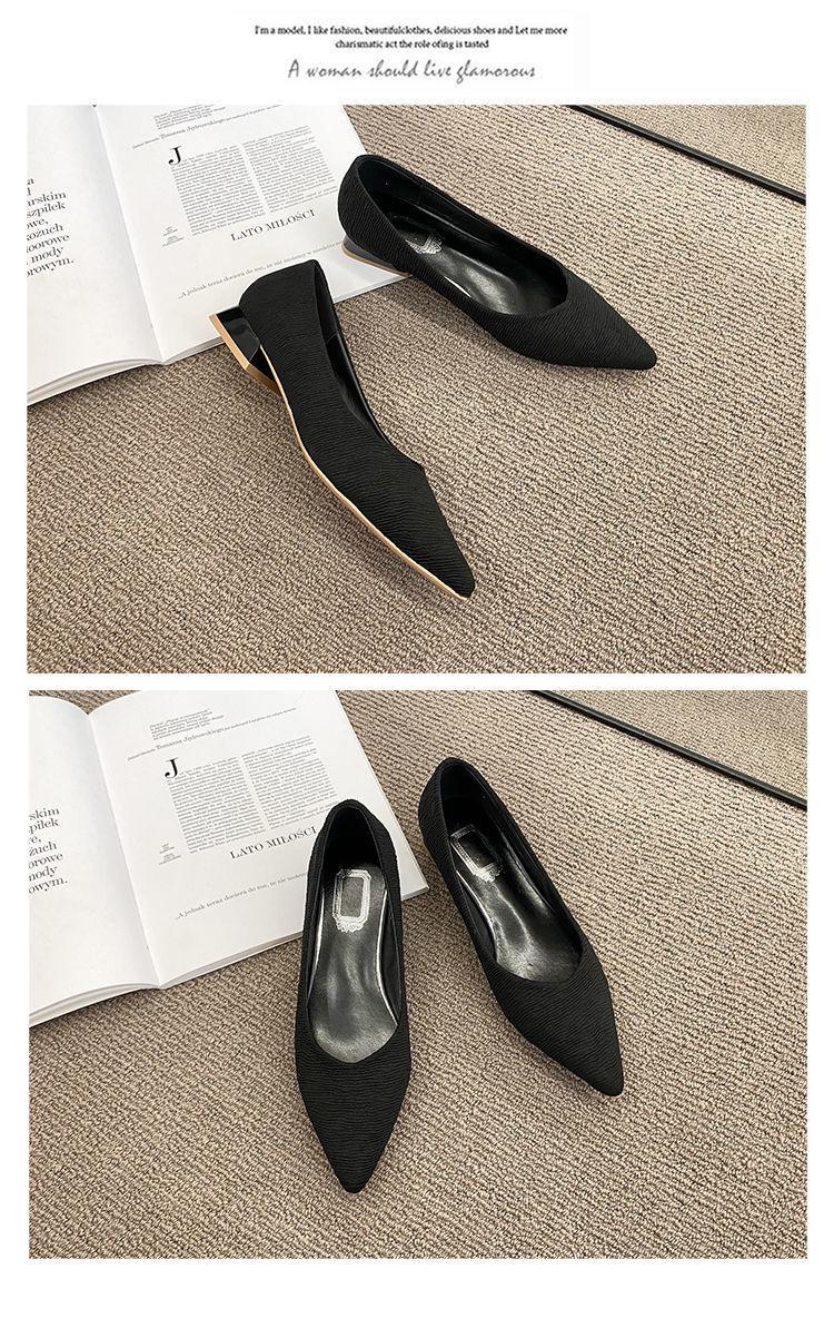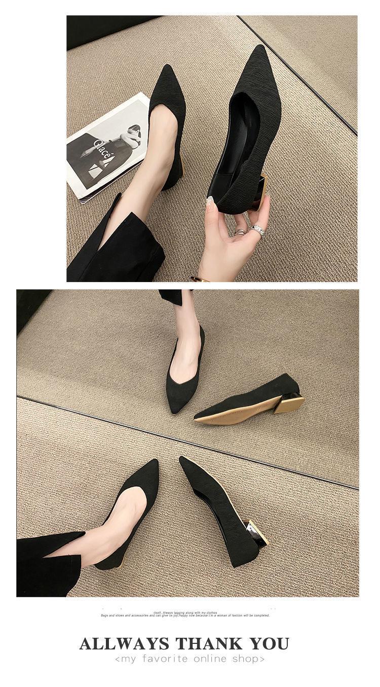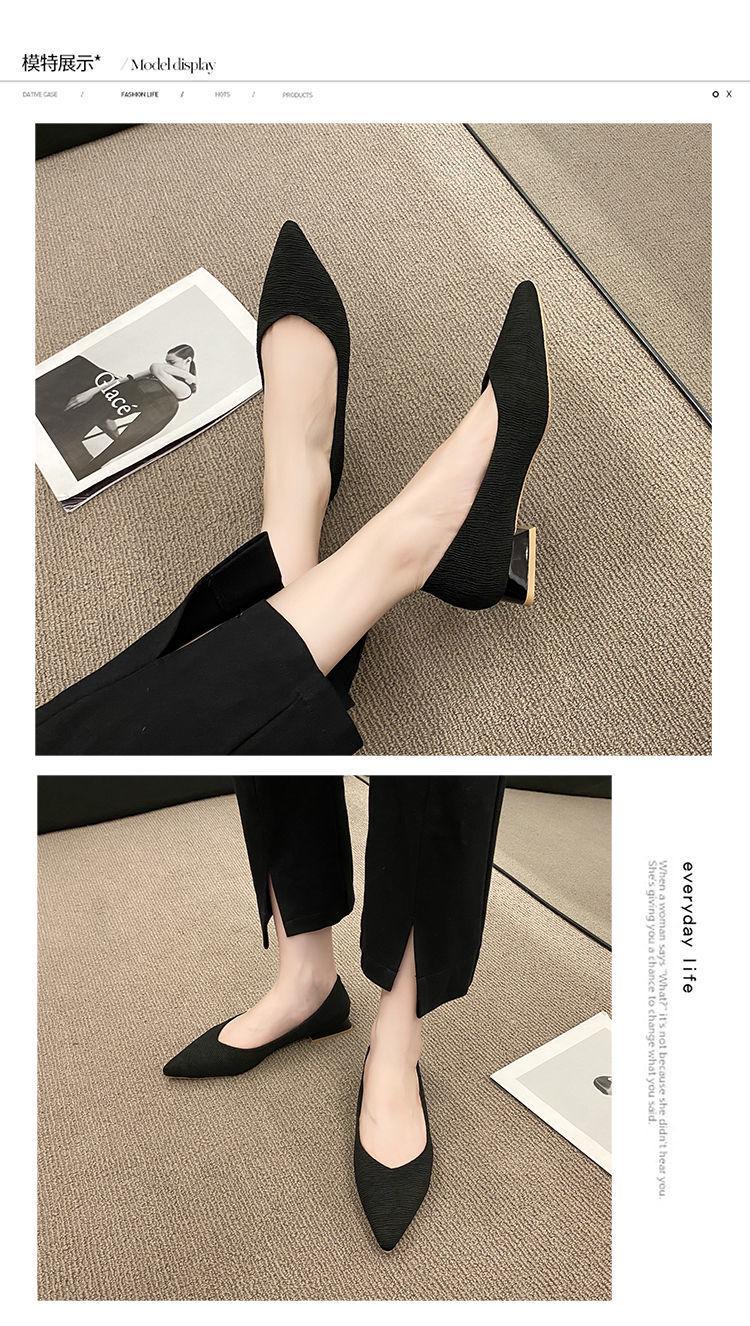 Novos Saltos Altos Outono Feminino Salto Grosso Salto Baixo Salto Pequeno Trabalho Profissional Boca Rasa All-match Preto Sapatos Pontudos ol Sapatos Femininos
