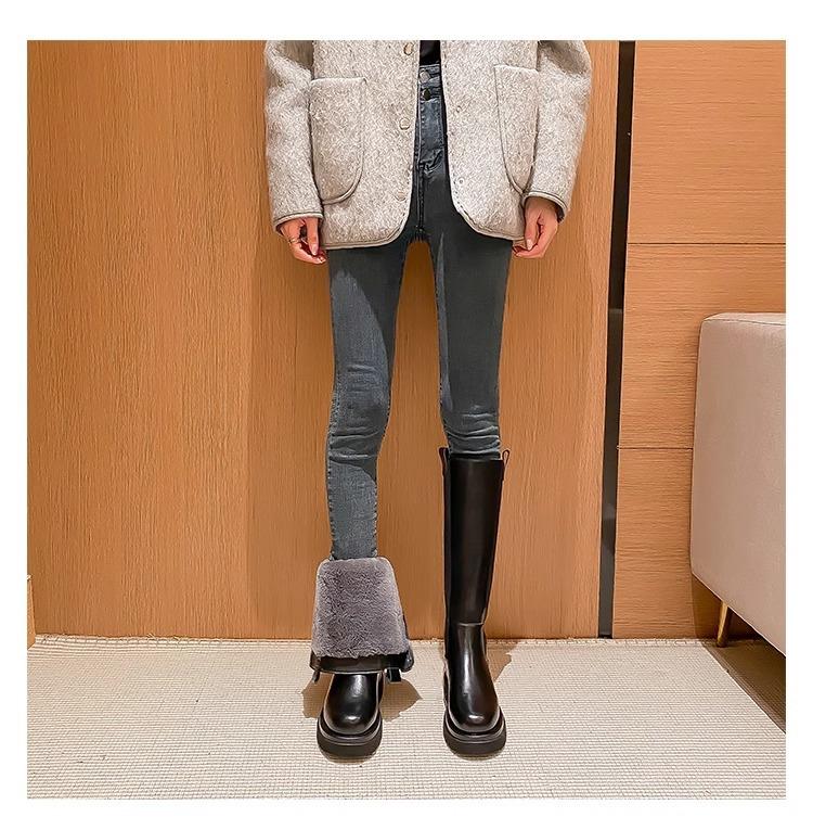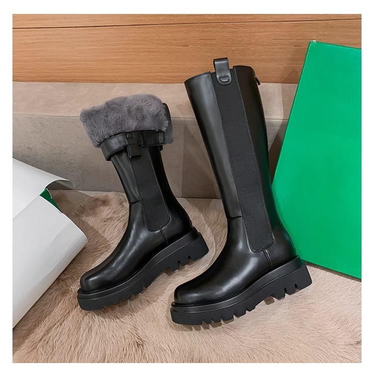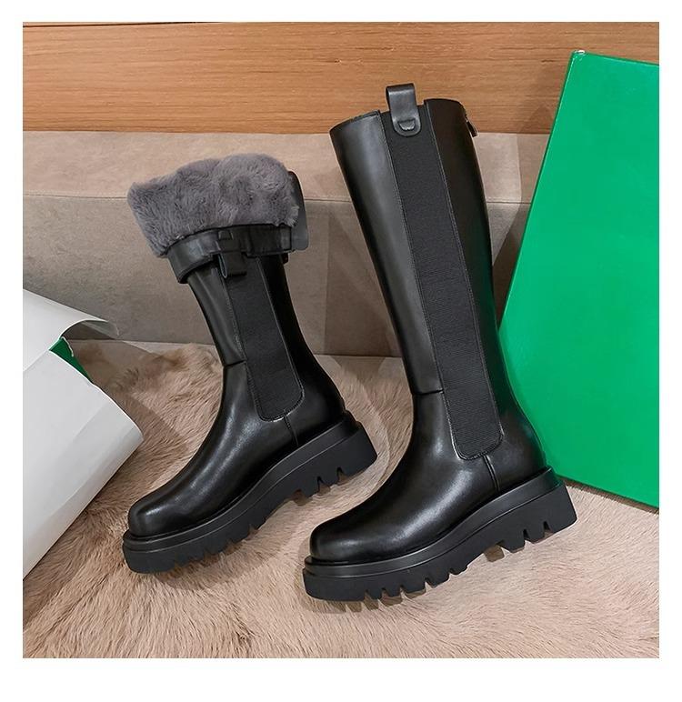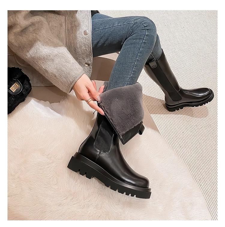 Botas Estilo Novo 2025 Forradas com Lã Botas de Neve de Inverno para Mulheres Botas de Pele Integrada Espessadas para Mulheres Botas Quentes de Cano Alto