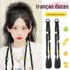 Peruca feminina rabo de cavalo alto trança doce menina legal torção natural longa trança tingida boxe trança cabelo falso rede vermelha trança espinha de peixe