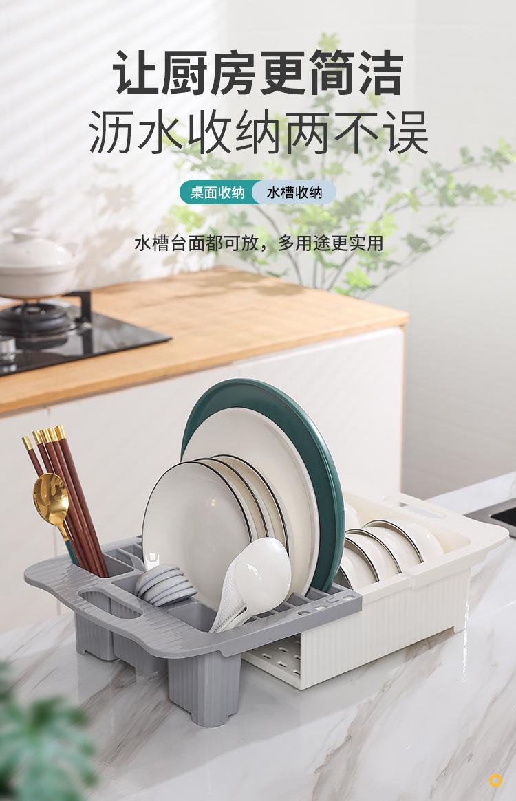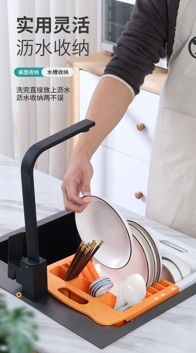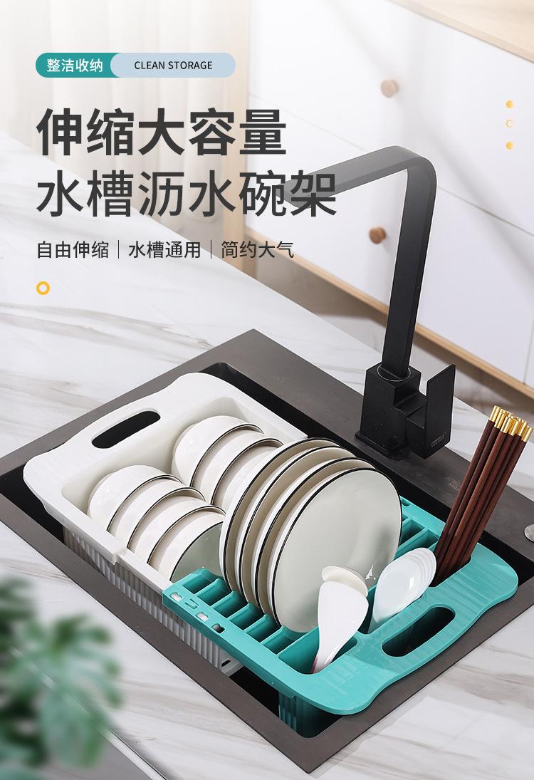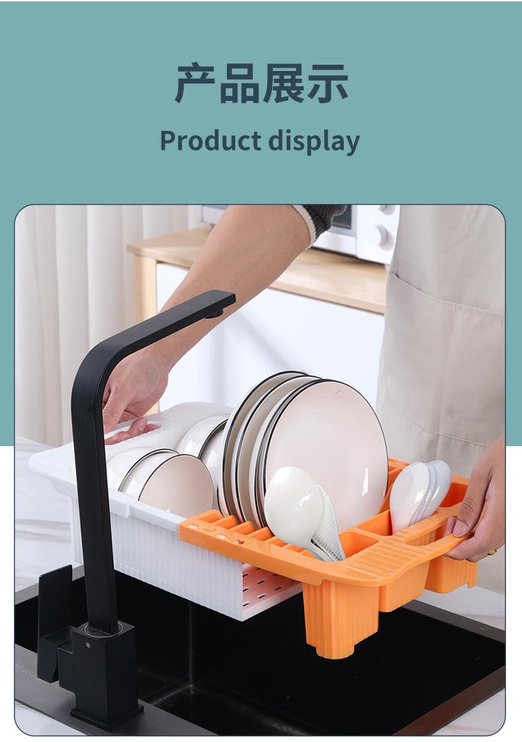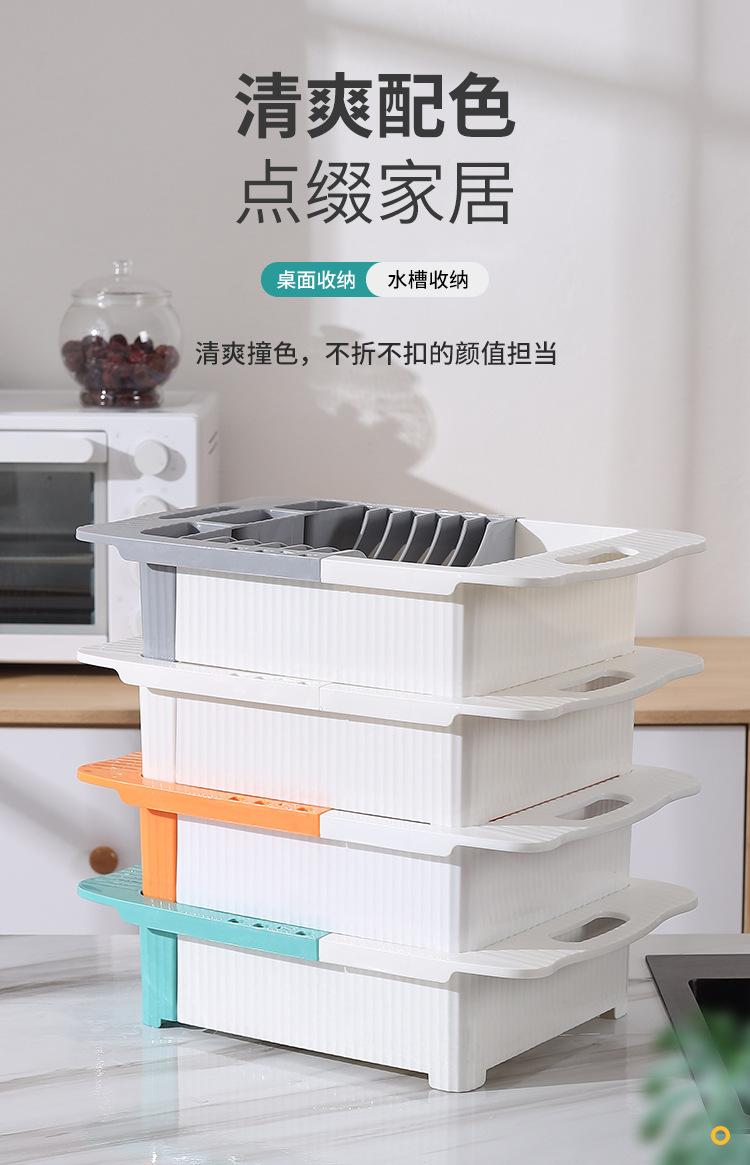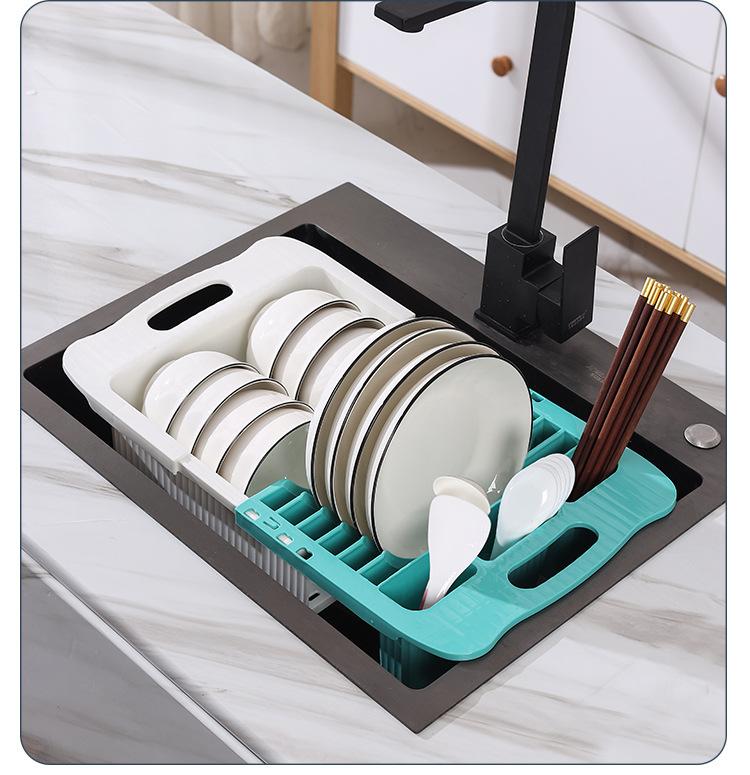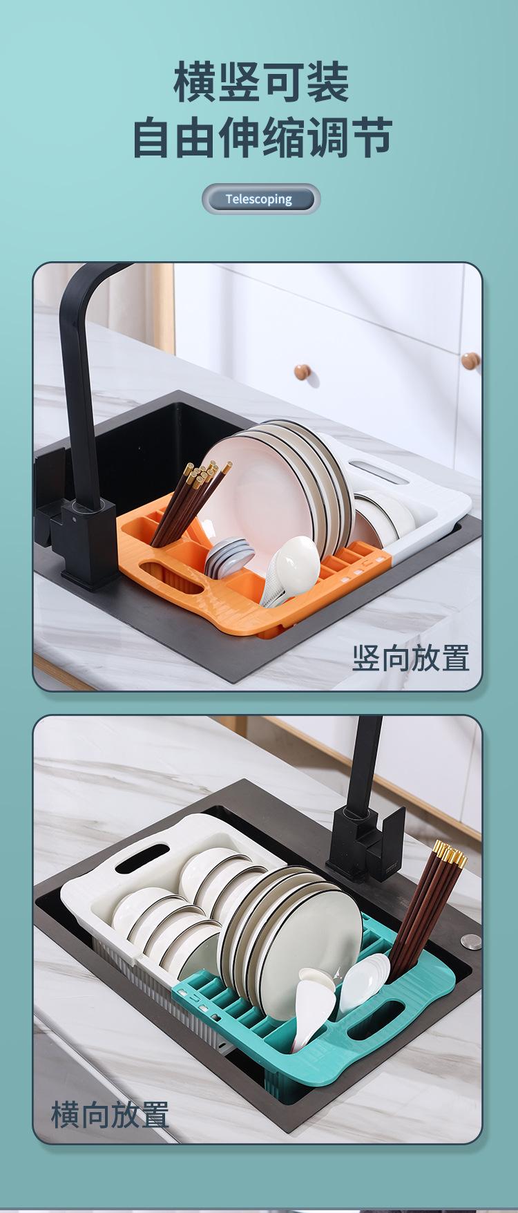 Talheres rack de drenagem engrossado partição cozinha prato rack de armazenamento telescópico ajustável pia dish rack cross-border