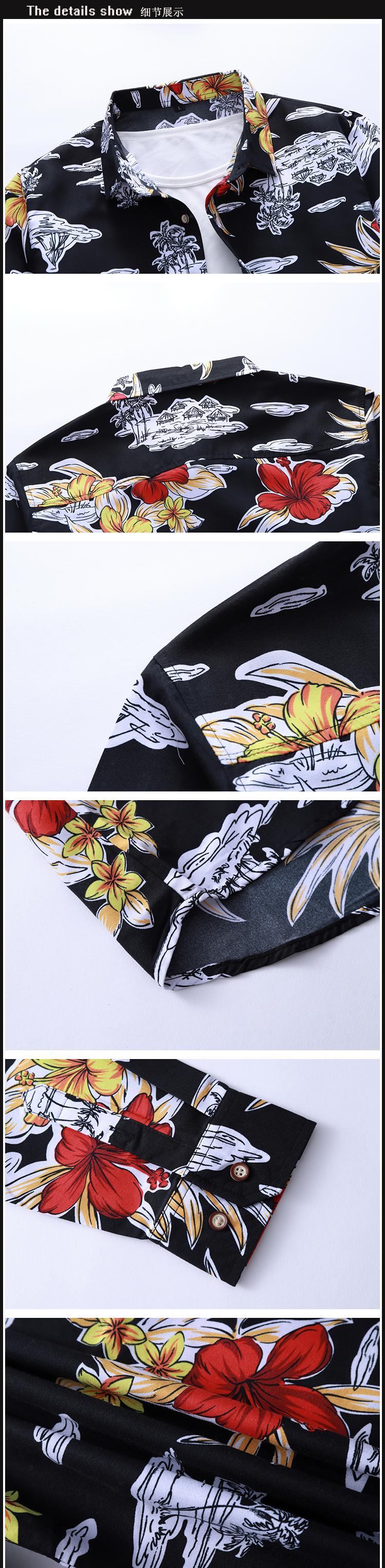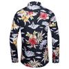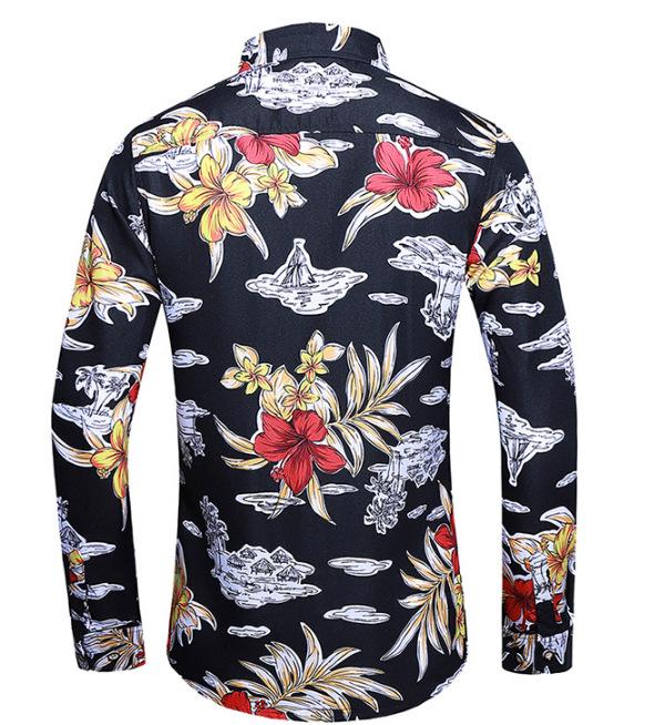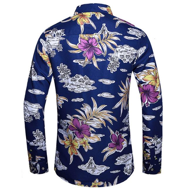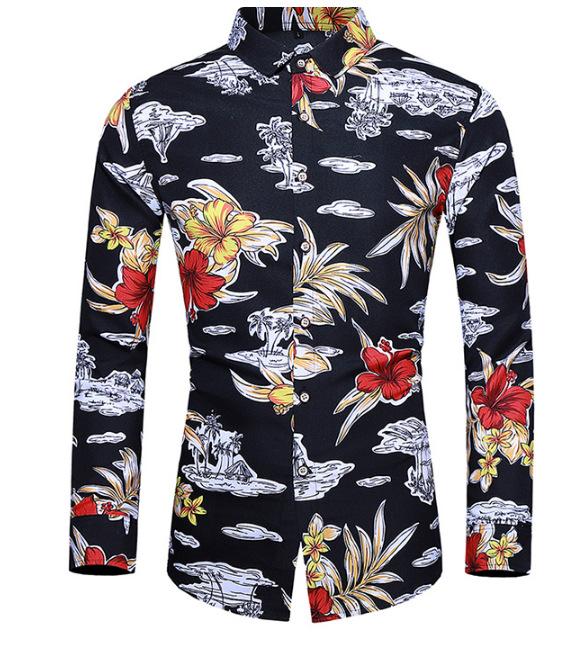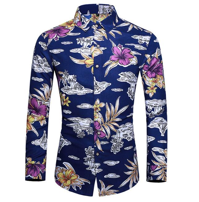Outono Novo Plus Size Camisa Masculina de Manga Longa com Estampa de Comércio Exterior Camisa de Manga Longa Masculina Slim-fit Estilo Britânico Gola Quadrada