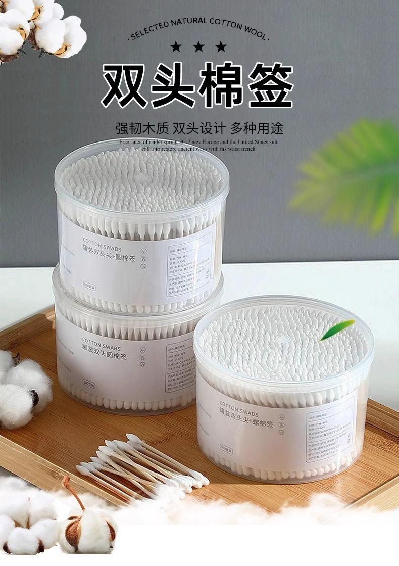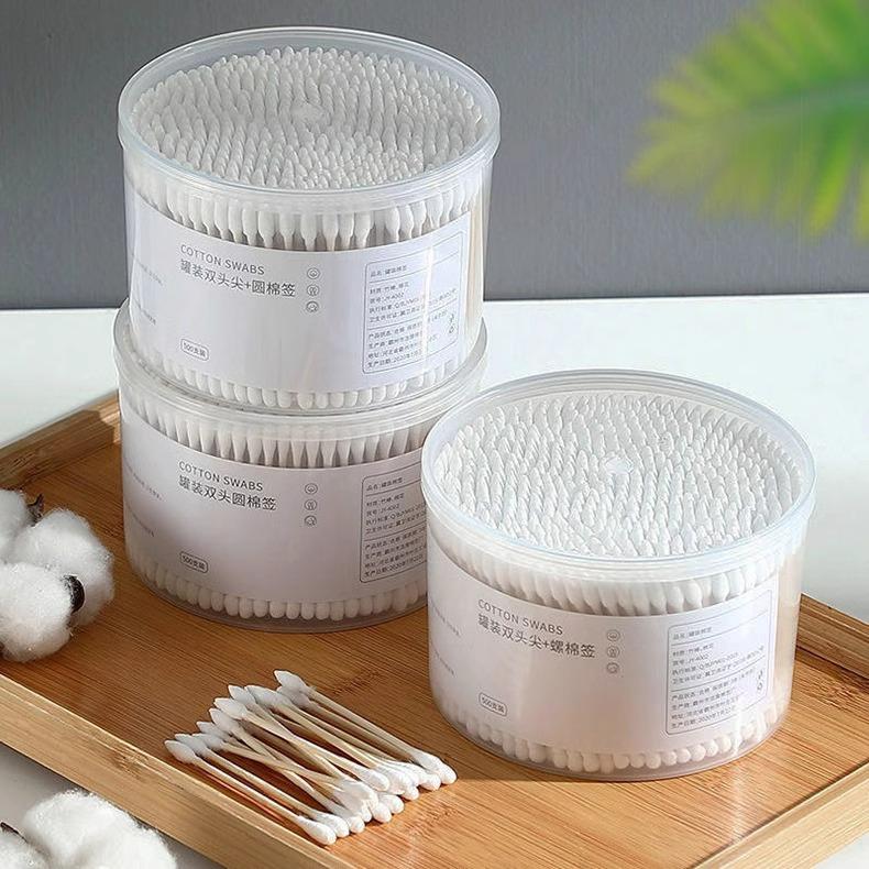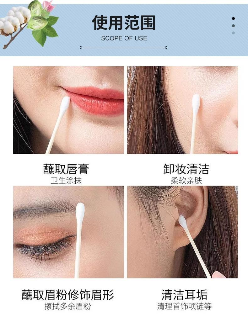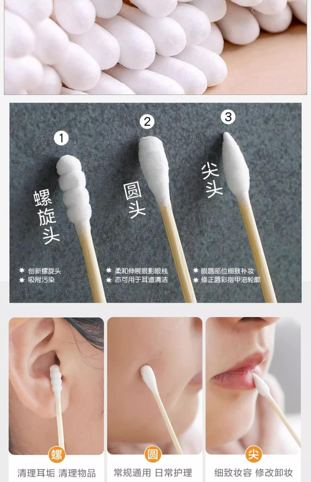 Cotonete de algodão de duas cabeças com maquiagem para puxar a orelha cotonete sanitário descartável para limpeza da colher de escavação da orelha cotonete de madeira cotonete de algodão espiral bola de algodão