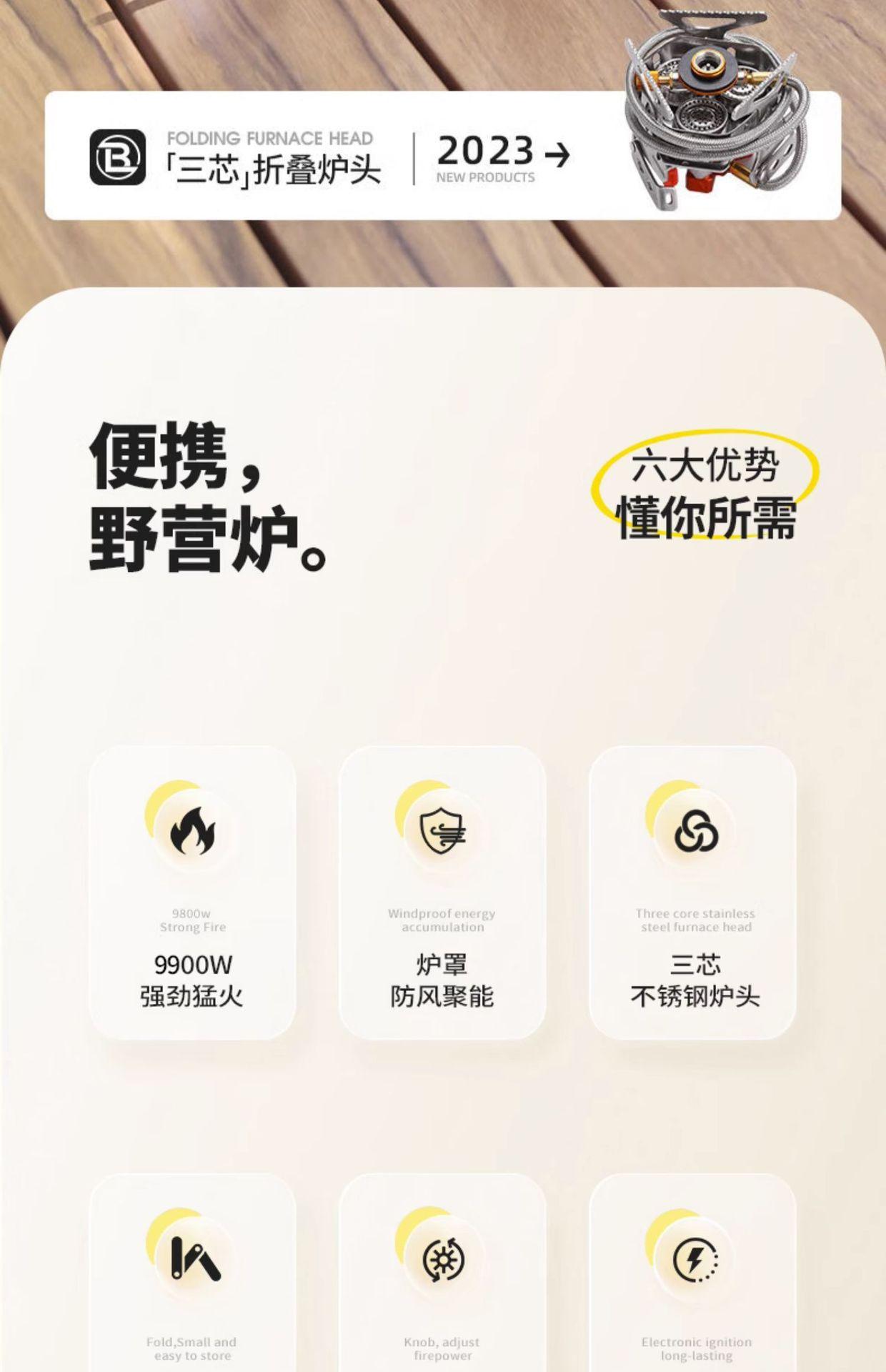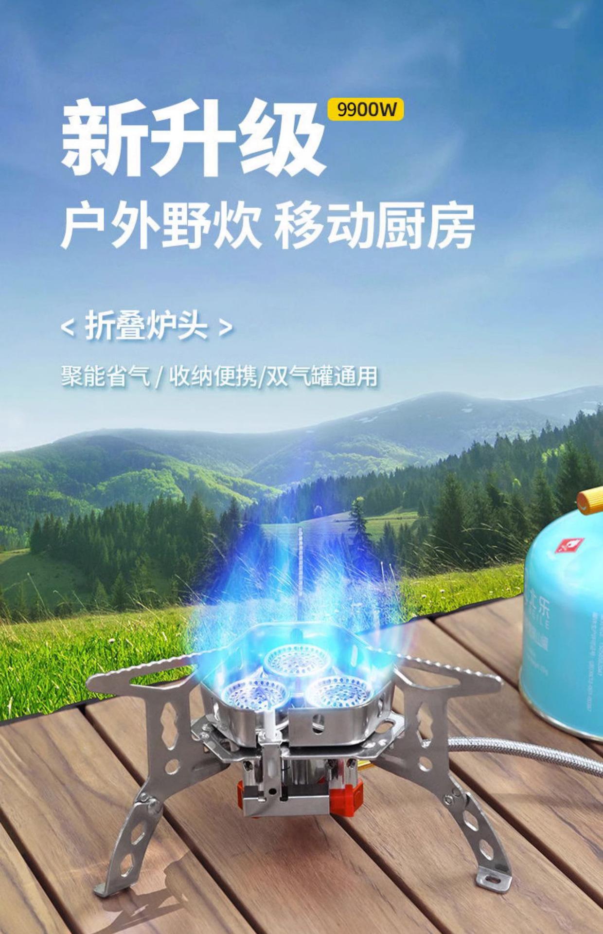 Fogão fogão ao ar livre portátil à prova de vento a gás de três cabeças feroz fogão a gás dobrável fogão a gás camping água fervente
