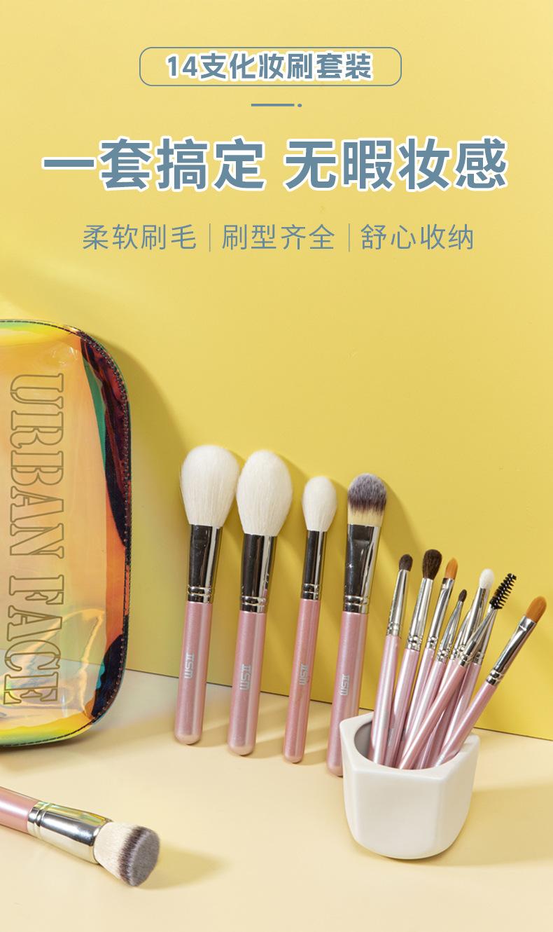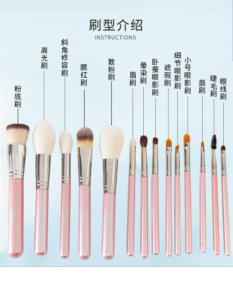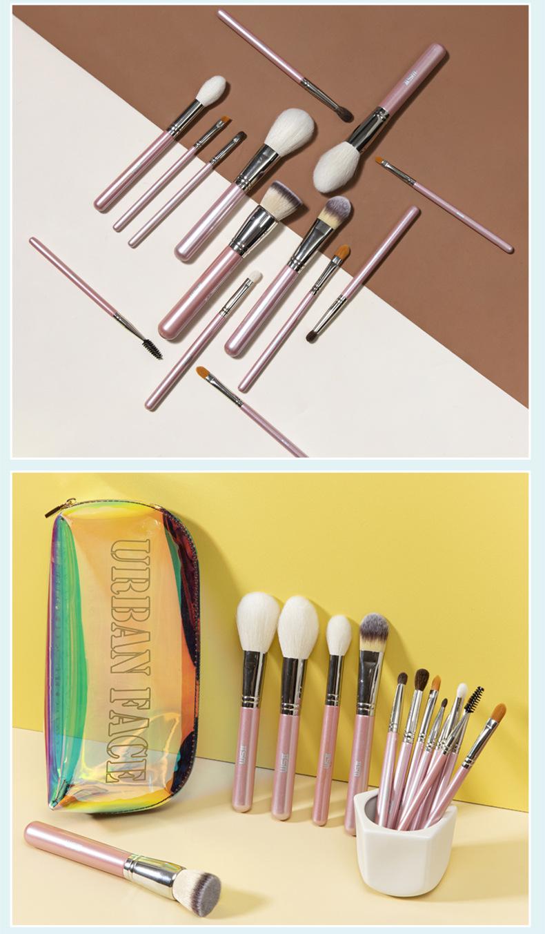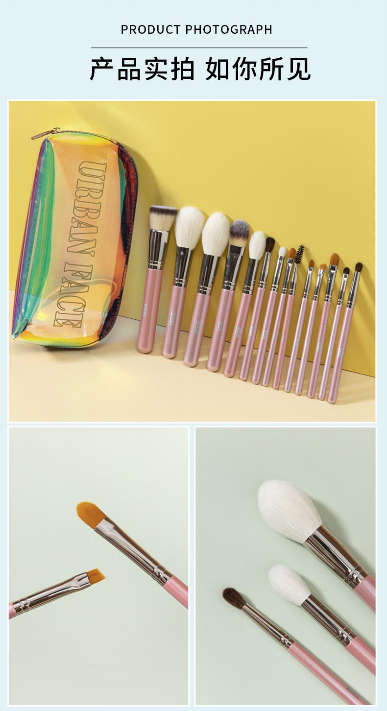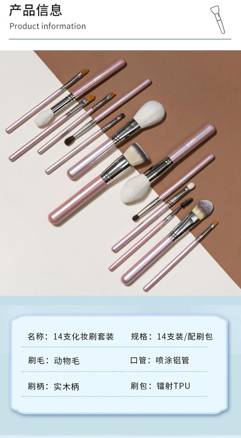 Conjunto de Pincéis de Maquiagem de 14 Peças, Pincéis de Cerdas Macias de Origem Animal, Pincel de Sombra, Pincel de Blush, Pincel de Detalhe para os Olhos, Conjunto Completo de Pincéis de Maquiagem