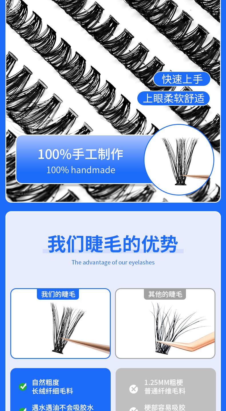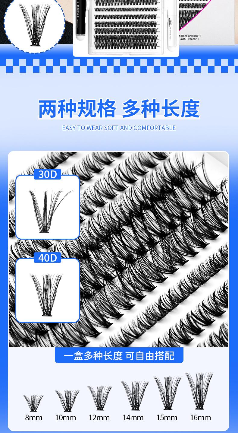 Cílios Postiços Hot Melt Cluster Único Auto-Enxerto 30D40D Atacado Comércio Exterior Cílios Segmentados Cabelo Macio Europeu e Americano Cauda de Olho