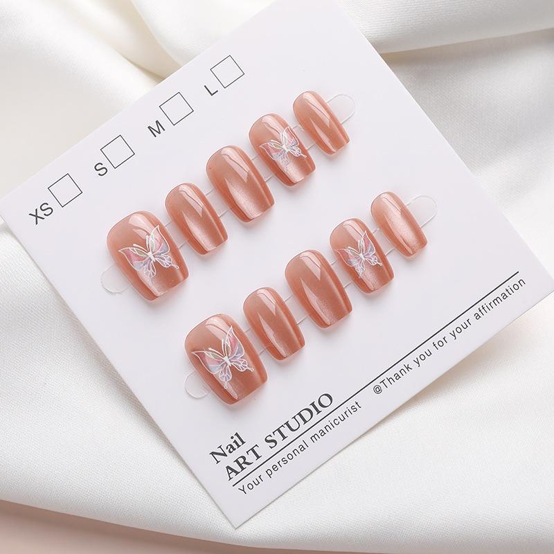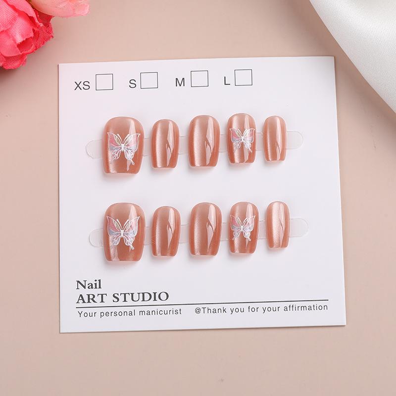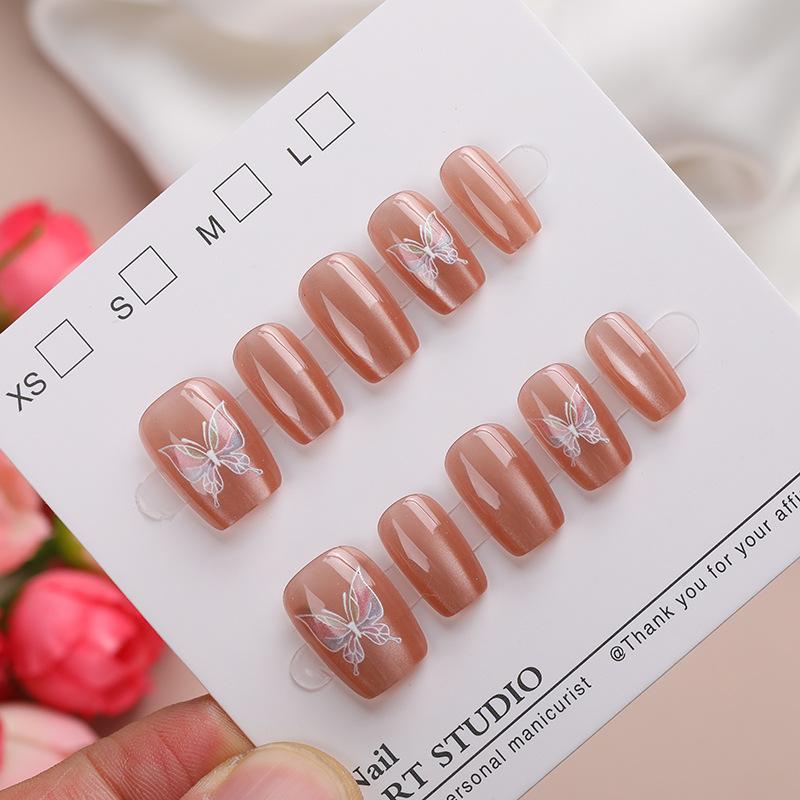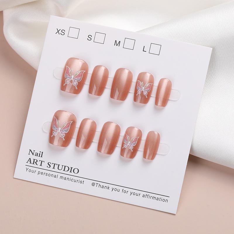 Manicure Feita à Mão Vestível Blush Borboleta Popular Produto Acabado Clareador Ins Adesivo de Unha Removível Adesivo Completo