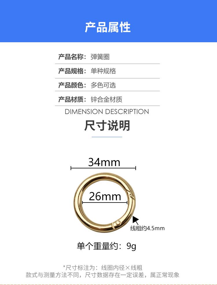 1 polegada anel bagagem acessórios de hardware gancho aberto mola anel conexão fivela diâmetro interno 2,6 cm